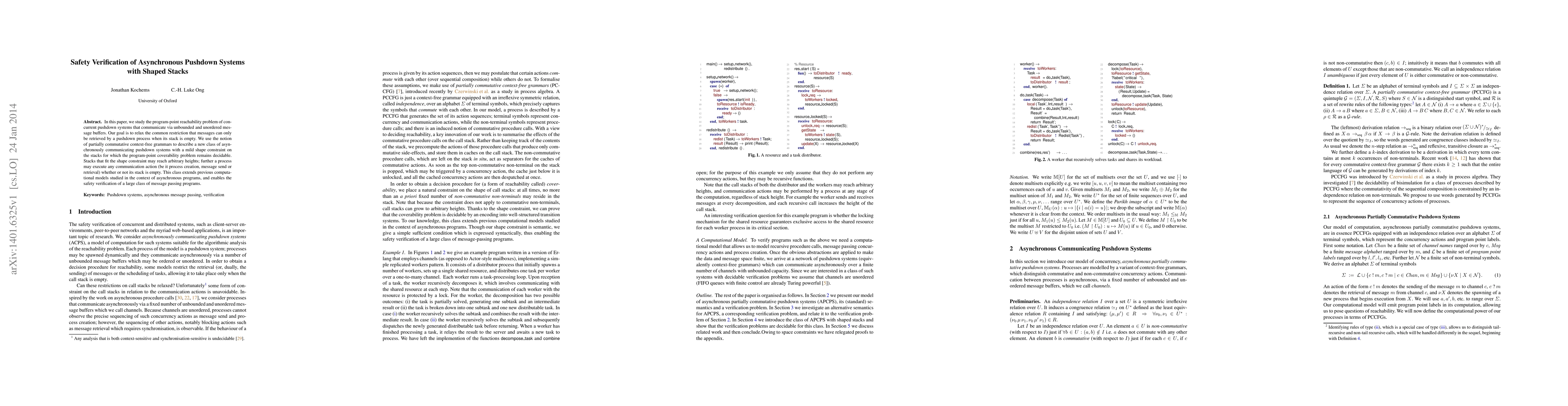 This paper introduces a new class of asynchronous pushdown systems with shaped stacks, where processes can communicate regardless of stack emptiness, and proposes a decidable program-point coverability problem using partially commutative context-free grammars, extending previous models for safety verification of message-passing programs.