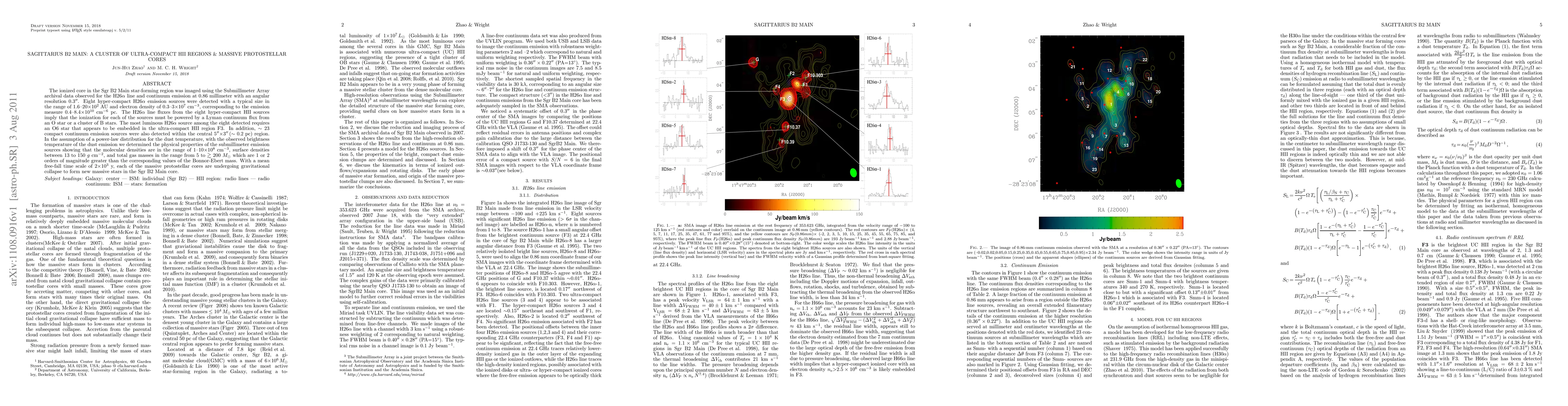 The Sgr B2 Main star-forming region was imaged revealing eight ultra-compact HII regions and 23 massive protostellar cores, indicating ongoing gravitational collapse and the formation of new massive stars. The HII regions are likely ionized by O stars, while the protostellar cores have gas masses up to 200 $M_\odot$.