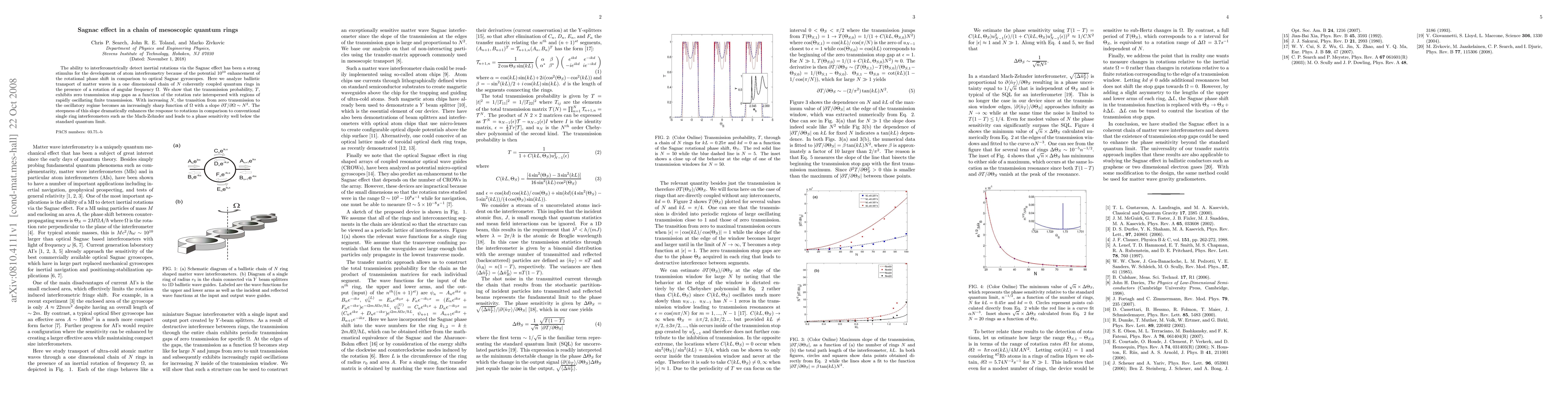 The ability to interferometrically detect inertial rotations via the Sagnac effect has been a strong stimulus for the development of atom interferometry because of the potential 10^{10} enhancement of the rotational phase shift in comparison to optical Sagnac gyroscopes. Here we analyze ballistic transport of matter waves in a one dimensional chain of N coherently coupled quantum rings in the presence of a rotation of angular frequency, \Omega. We show that the transmission probability, T, exhibits zero transmission stop gaps as a function of the rotation rate interspersed with regions of rapidly oscillating finite transmission. With increasing N, the transition from zero transmission to the oscillatory regime becomes an increasingly sharp function of \Omega with a slope \partialT/\partial \Omega N^2. The steepness of this slope dramatically enhances the response to rotations in comparison to conventional single ring interferometers such as the Mach-Zehnder and leads to a phase sensitivity well below the standard quantum limit.