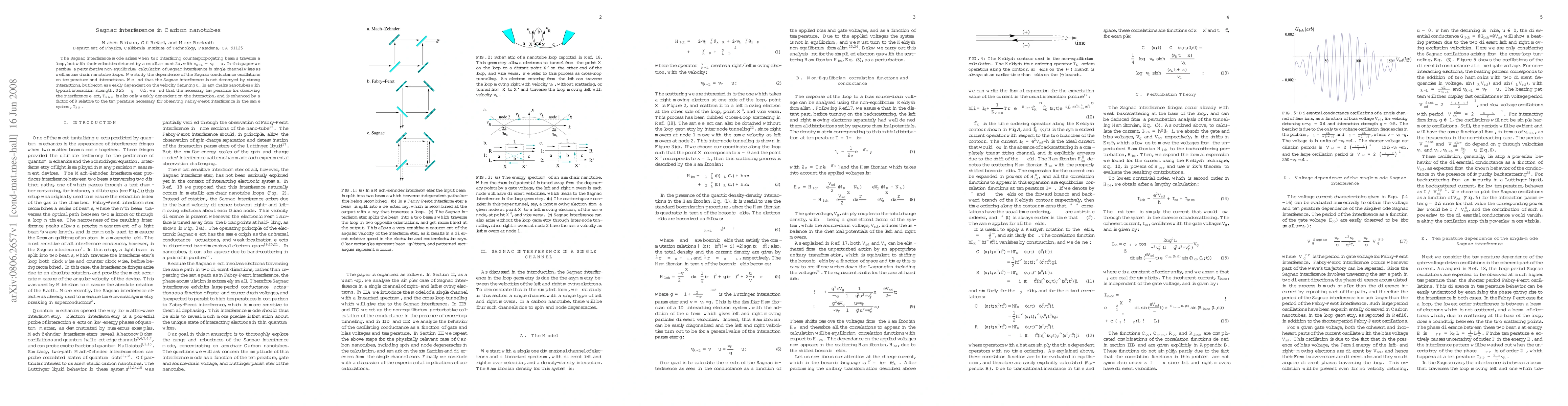 This research calculates Sagnac interference in single-channel wires and armchair nanotube loops, finding that strong interactions don't destroy the interference but make it dependent on velocity detuning. In armchair nanotubes, the temperature for observing Sagnac interference (T_SAG) is only weakly dependent on interaction strength and is eight times higher than that for Fabry-Perot interference (T_FP).