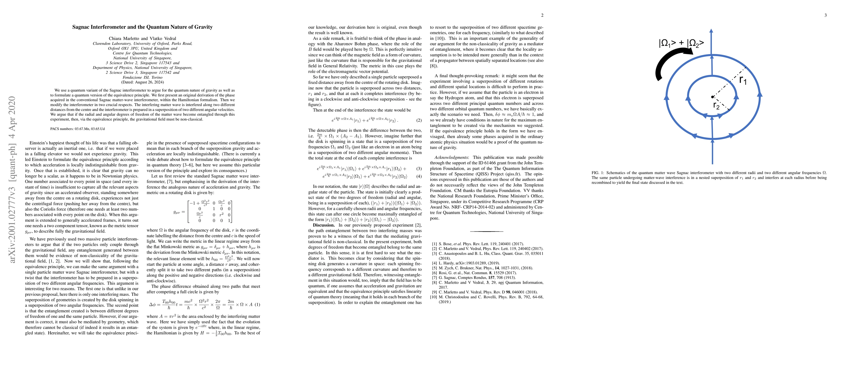 This paper proposes a quantum variant of the Sagnac interferometer to demonstrate the quantum nature of gravity and formulate a quantum equivalence principle. By entangling radial and angular degrees of freedom in a modified interferometer, it suggests that the gravitational field must exhibit non-classical behavior.