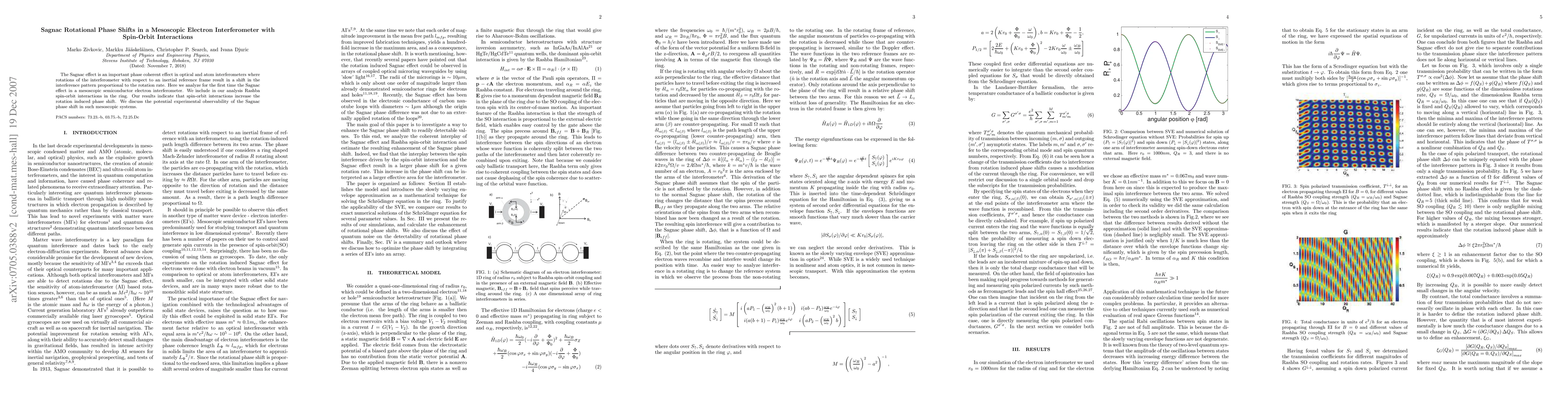 This paper investigates the Sagnac effect in a mesoscopic semiconductor electron interferometer, revealing that spin-orbit interactions enhance the rotation-induced phase shift. The study discusses the potential experimental detection of these effects in such systems.