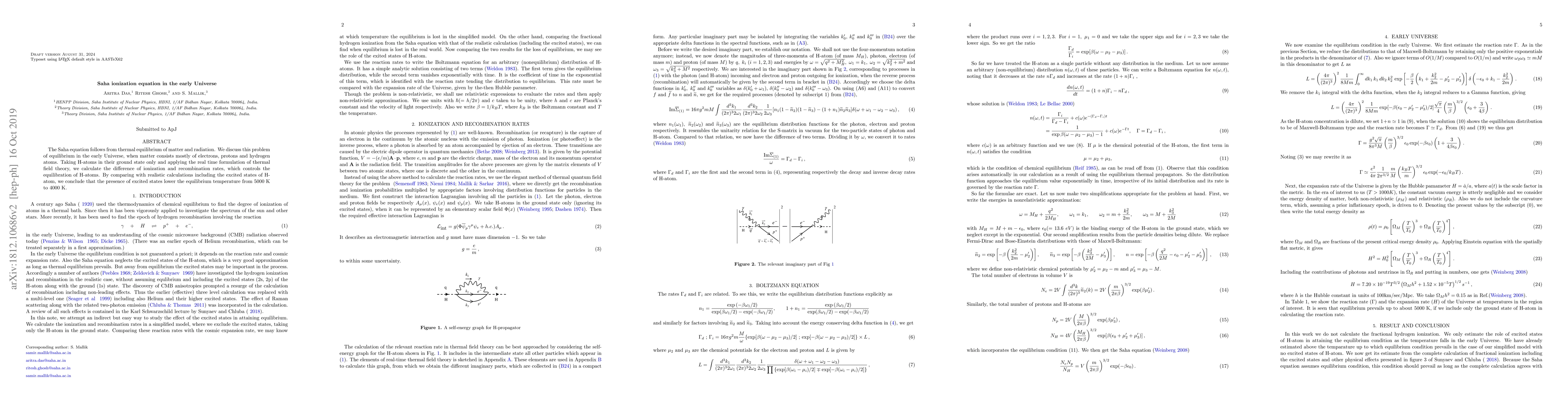 Researchers study the Saha ionization equation in the early universe, comparing ionization and recombination rates to the expansion rate of the universe at different temperatures.