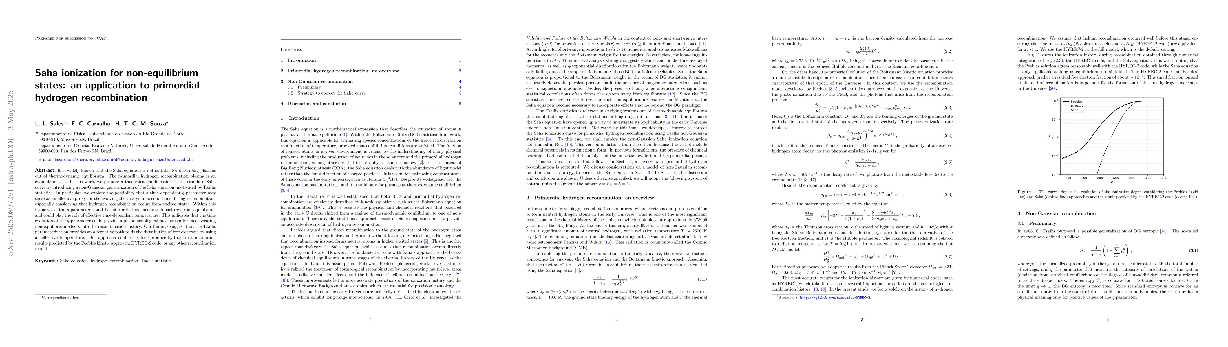 Researchers develop a new theoretical approach to describe primordial hydrogen recombination, using a modified Saha equation based on Tsallis statistics to capture non-equilibrium effects.
