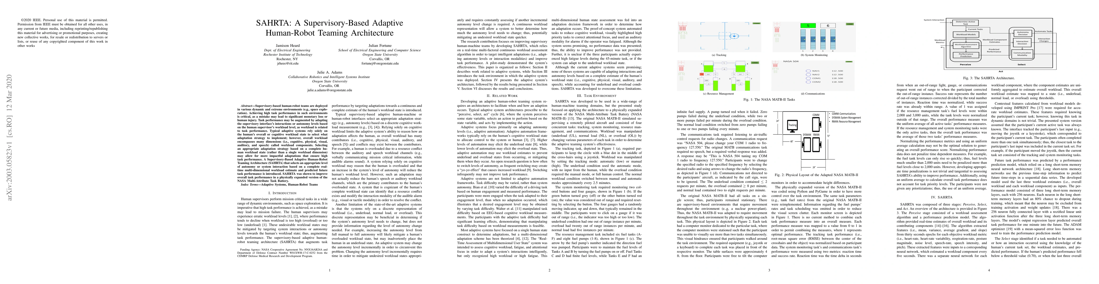 The SAHRTA architecture enhances supervisory-based human-robot teamwork by adapting the supervisory interface based on a comprehensive real-time multi-dimensional human workload assessment, leading to improved task performance in dynamic environments. Empirical results demonstrate its effectiveness in a NASA Multi-Attribute Task Battery scenario.
