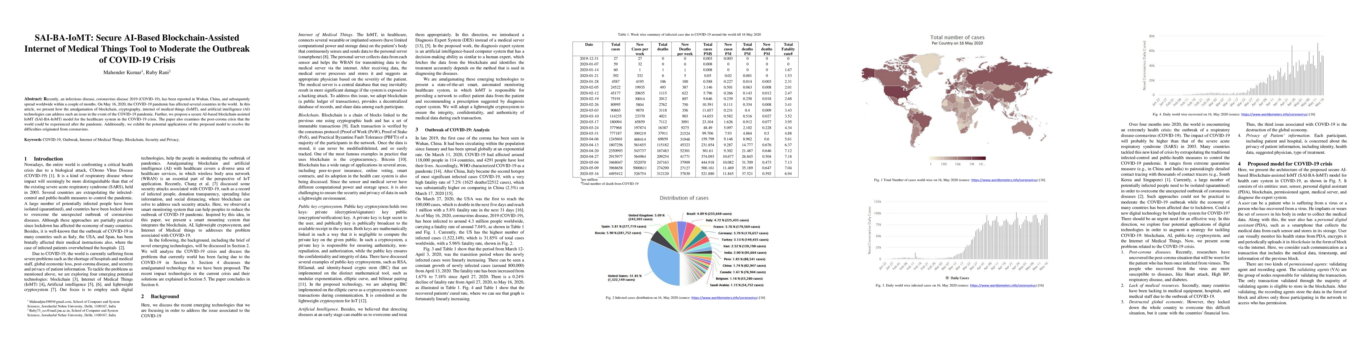 This paper proposes a secure AI-based blockchain-assisted Internet of Medical Things (SAI-BA-IoMT) model to address the COVID-19 pandemic, integrating blockchain, cryptography, and AI technologies to moderate the outbreak. The model aims to tackle the difficulties arising from the pandemic and explores its potential applications post-crisis.