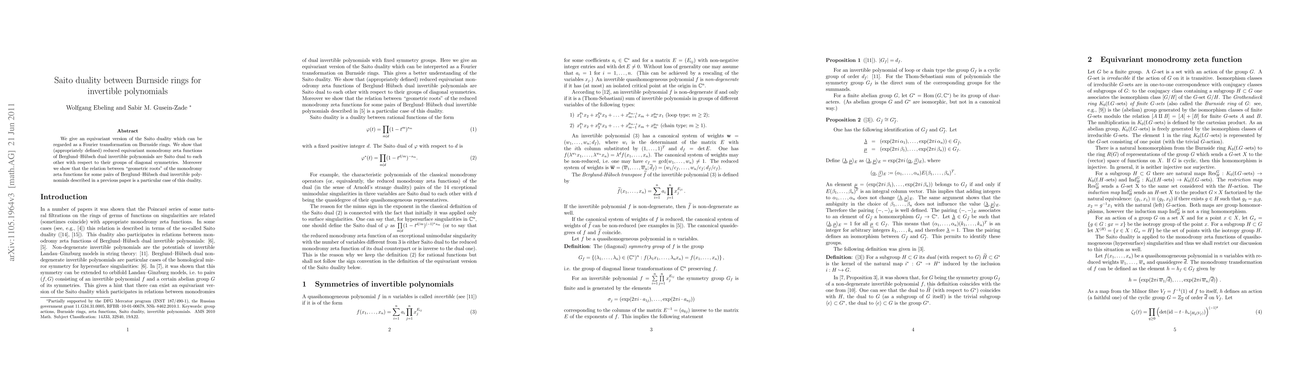 We give an equivariant version of the Saito duality which can be regarded as a Fourier transformation on Burnside rings. We show that (appropriately defined) reduced equivariant monodromy zeta functions of Berglund-H\"ubsch dual invertible polynomials are Saito dual to each other with respect to their groups of diagonal symmetries. Moreover we show that the relation between "geometric roots" of the monodromy zeta functions for some pairs of Berglund-H\"ubsch dual invertible polynomials described in a previous paper is a particular case of this duality.