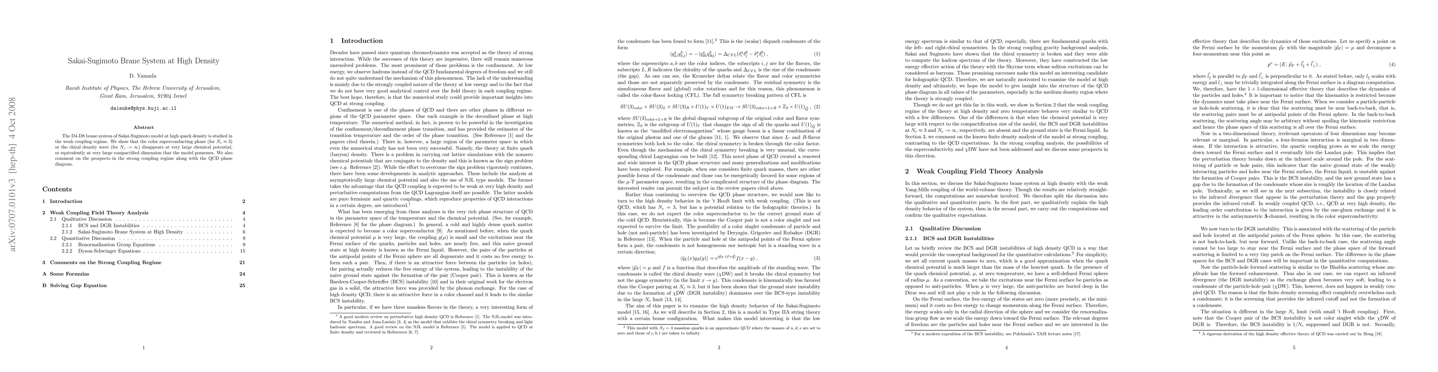 Researchers studied the Sakai-Sugimoto brane system at high quark density in a weak coupling regime, finding that certain phases disappear at very large chemical potentials or compactified dimensions.