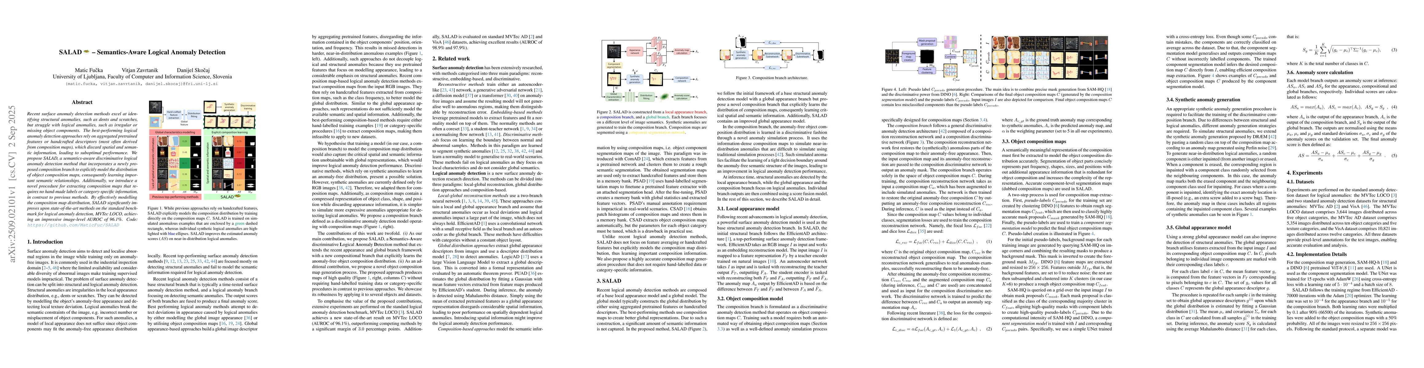 Recent surface anomaly detection methods excel at identifying structural anomalies, such as dents and scratches, but struggle with logical anomalies, such as irregular or missing object components. The best-performing logical anomaly detection approaches rely on aggregated pretrained features or handcrafted descriptors (most often derived from composition maps), which discard spatial and semantic information, leading to suboptimal performance. We propose SALAD, a semantics-aware discriminative logical anomaly detection method that incorporates a newly proposed composition branch to explicitly model the distribution of object composition maps, consequently learning important semantic relationships. Additionally, we introduce a novel procedure for extracting composition maps that requires no hand-made labels or category-specific information, in contrast to previous methods. By effectively modelling the composition map distribution, SALAD significantly improves upon state-of-the-art methods on the standard benchmark for logical anomaly detection, MVTec LOCO, achieving an impressive image-level AUROC of 96.1%. Code: https://github.com/MaticFuc/SALAD