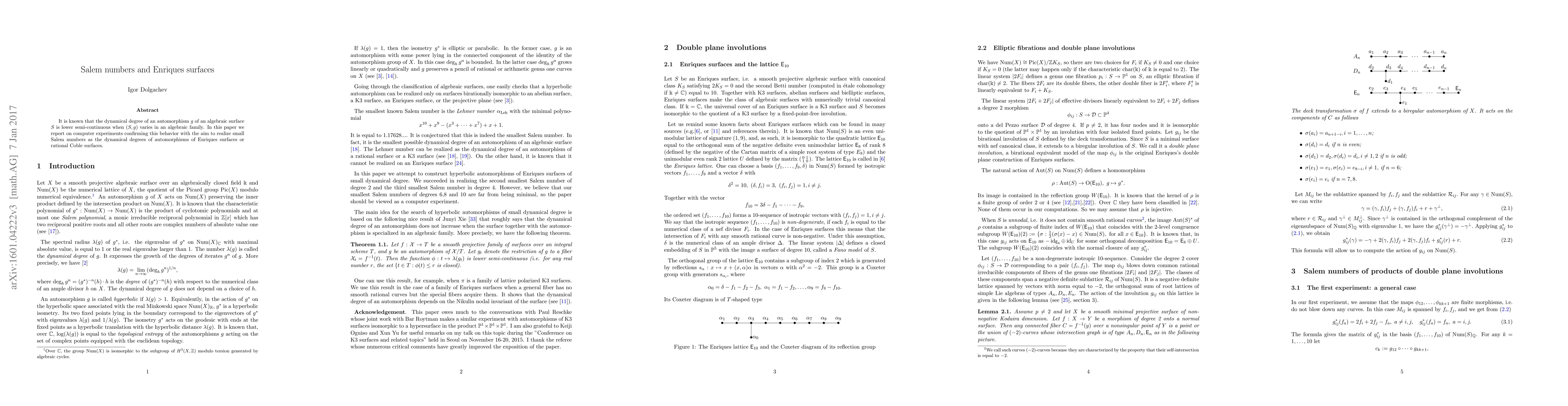 It is known that the dynamical degree, or equivalently, the topological entropy of an automorphism g of an algebraic surface S is lower semi-continuous when (S,g) varies in a algebraic family. In this paper we make a series of experiments confirming this behavior with the aim to realize small Salem numbers as the dynamical degrees of automorphisms of Enriques surfaces.