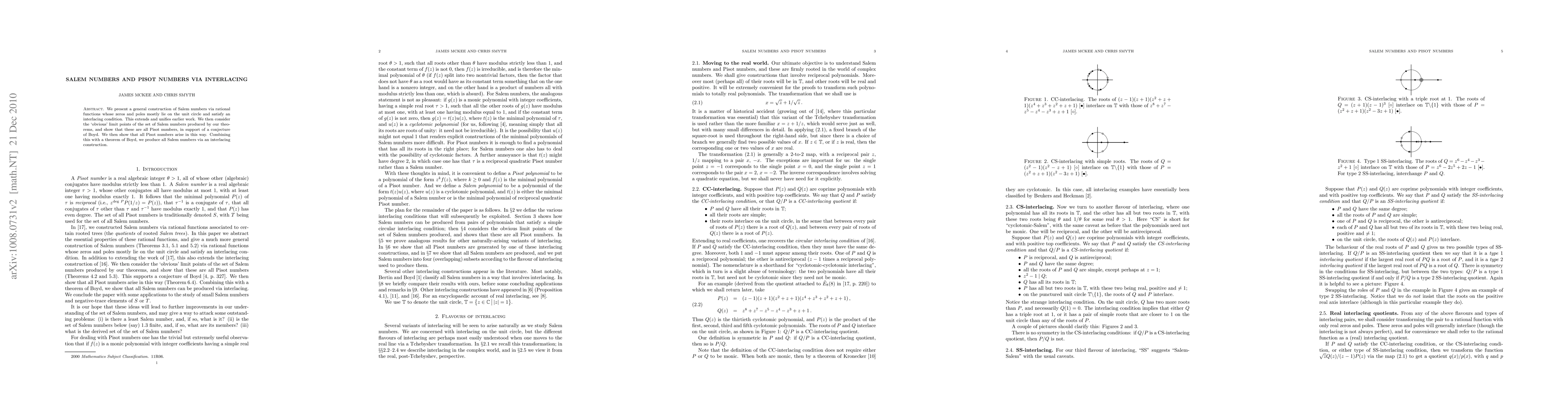 This paper constructs Salem numbers using rational functions with zeros and poles on the unit circle that satisfy an interlacing condition, extending previous work. It demonstrates that the limit points of these constructions are Pisot numbers, supporting Boyd's conjecture, and shows that all Pisot numbers can be derived in this manner, ultimately proving that all Salem numbers arise through an interlacing construction.