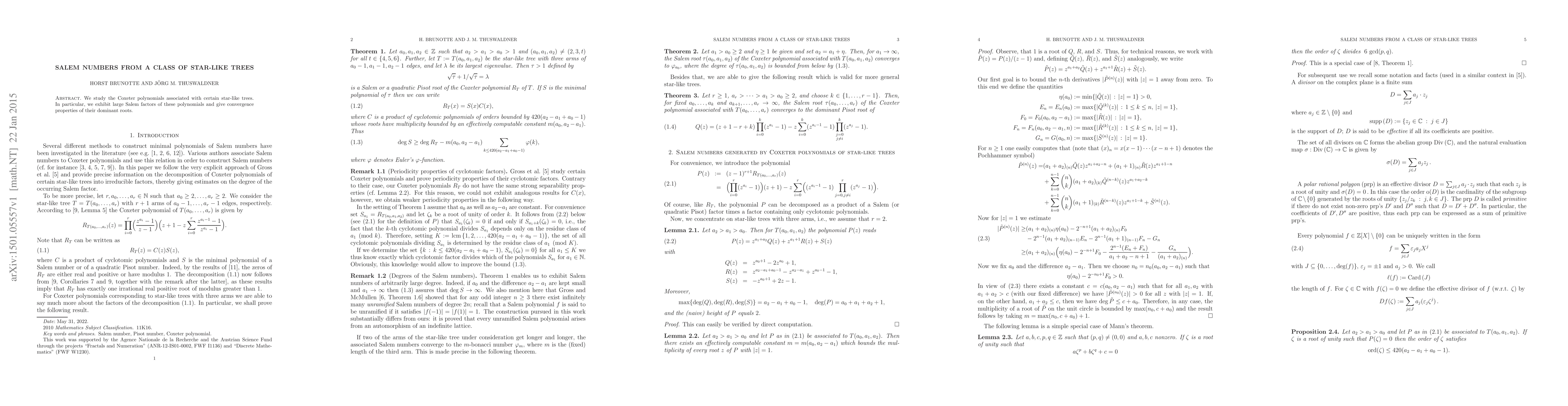 This paper investigates Coxeter polynomials derived from a class of star-like trees, demonstrating significant Salem factors within these polynomials and analyzing the convergence properties of their principal roots.