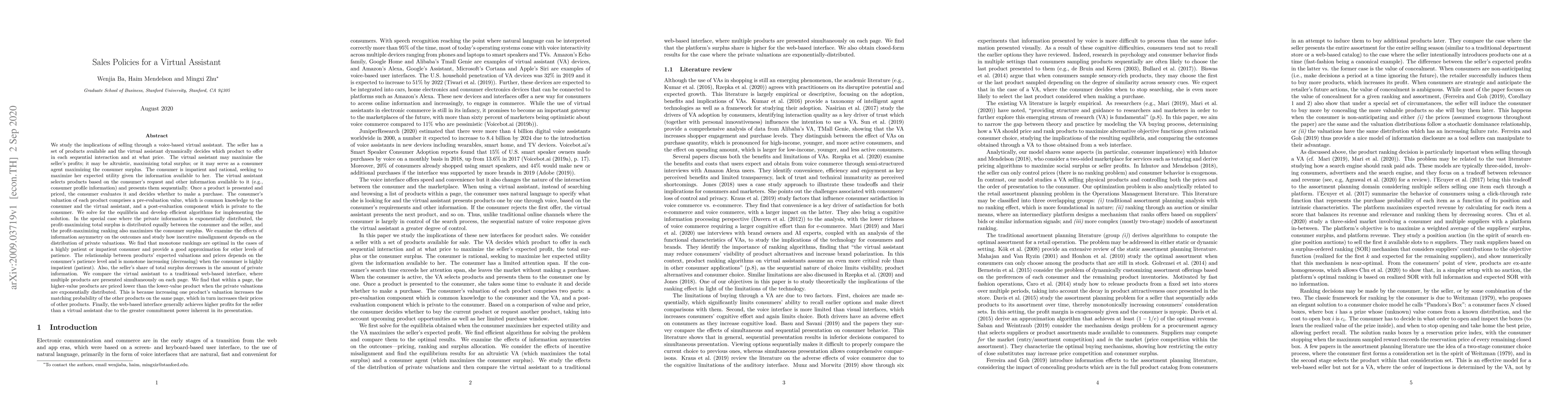A virtual assistant's sales strategy can maximize revenue for both the seller and consumer, but its effectiveness depends on consumer patience levels and product valuations. The paper suggests that a voice-based virtual assistant can outperform traditional web-based interfaces in certain scenarios.