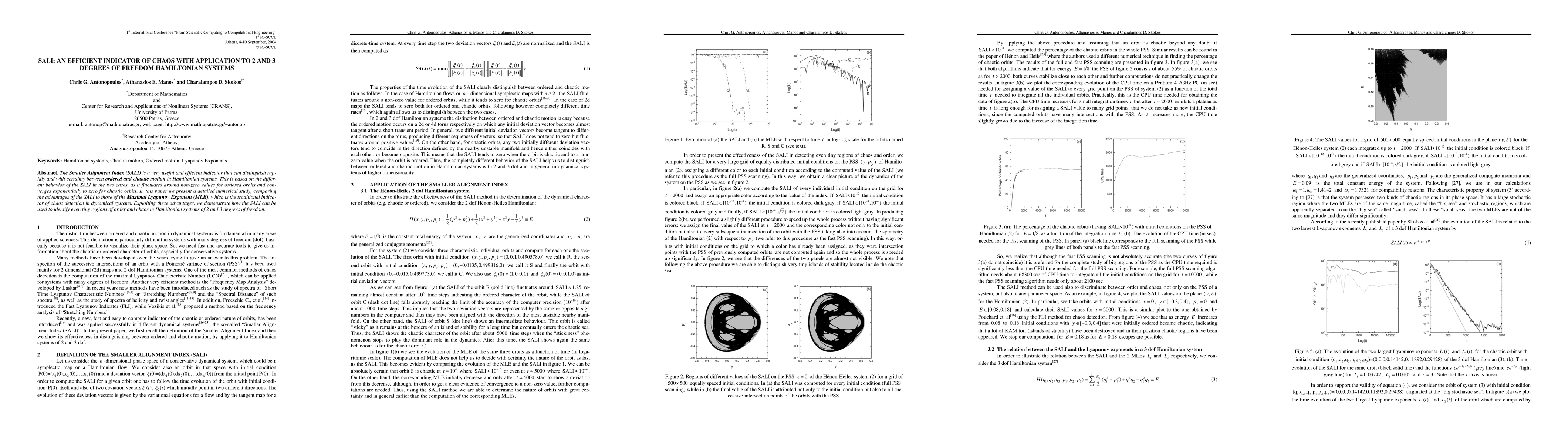 The Smaller Alignment Index (SALI) efficiently distinguishes between ordered and chaotic motion in Hamiltonian systems, fluctuating for order and converging to zero for chaos. Compared to the Maximal Lyapunov Exponent (MLE), SALI offers superior detection capabilities, enabling identification of minute regions of order and chaos in systems with 2 and 3 degrees of freedom.