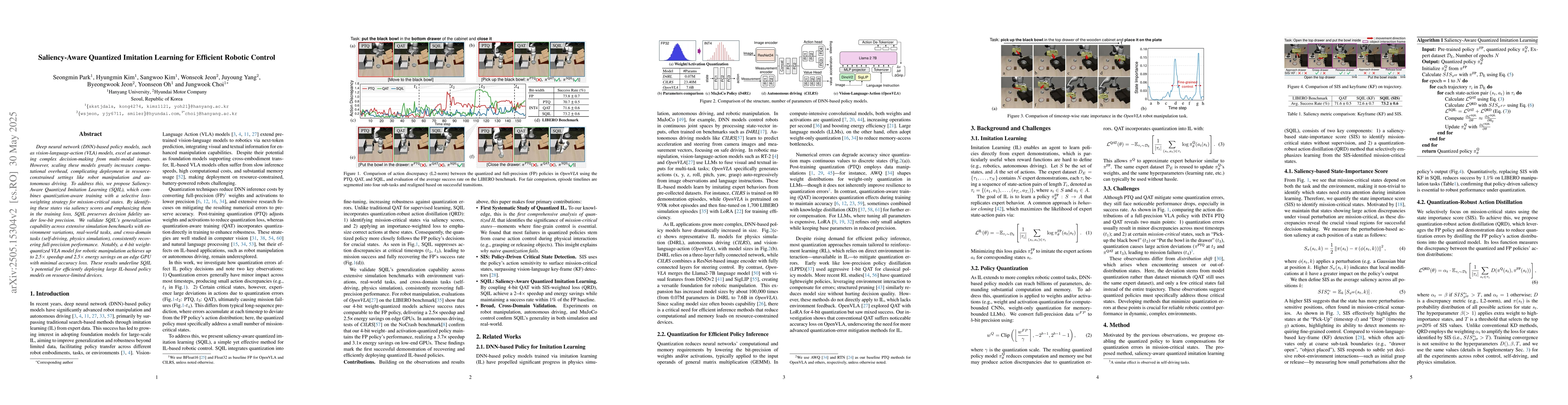 A new method called Saliency-Aware Quantized Imitation Learning (SQIL) reduces computational overhead in complex decision-making models for robots and self-driving cars, achieving significant speedup and energy savings without losing accuracy.