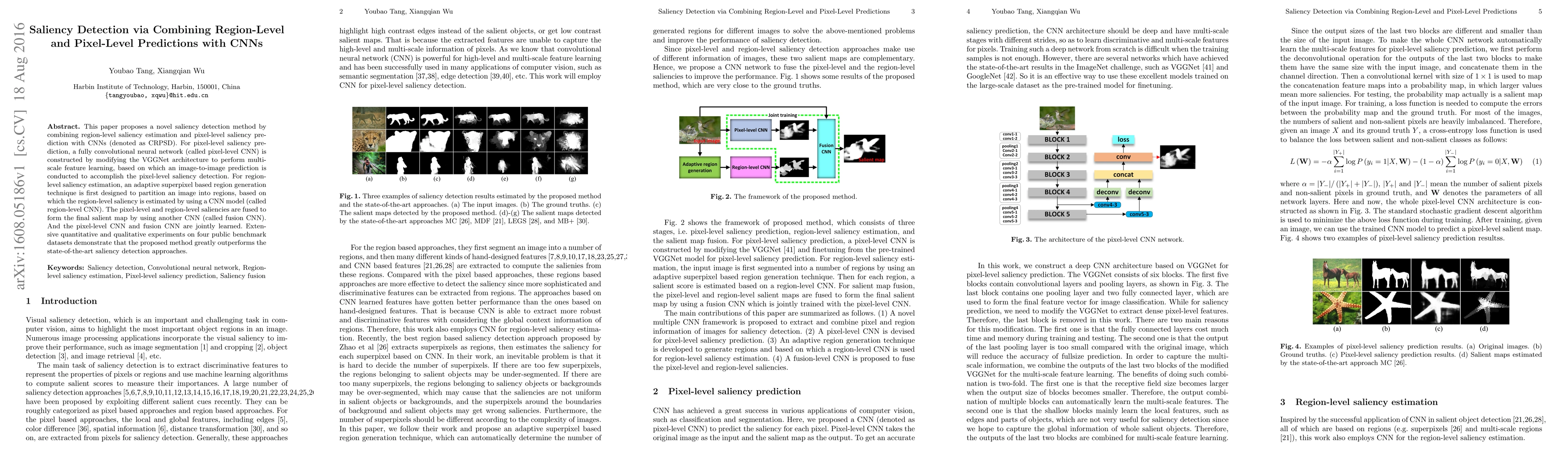 This paper introduces CRPSD, a saliency detection method that combines region-level and pixel-level predictions using CNNs. It employs a modified VGGNet for pixel-level saliency and a CNN-based region-level approach, with both predictions fused to generate the final salient map, outperforming existing methods.