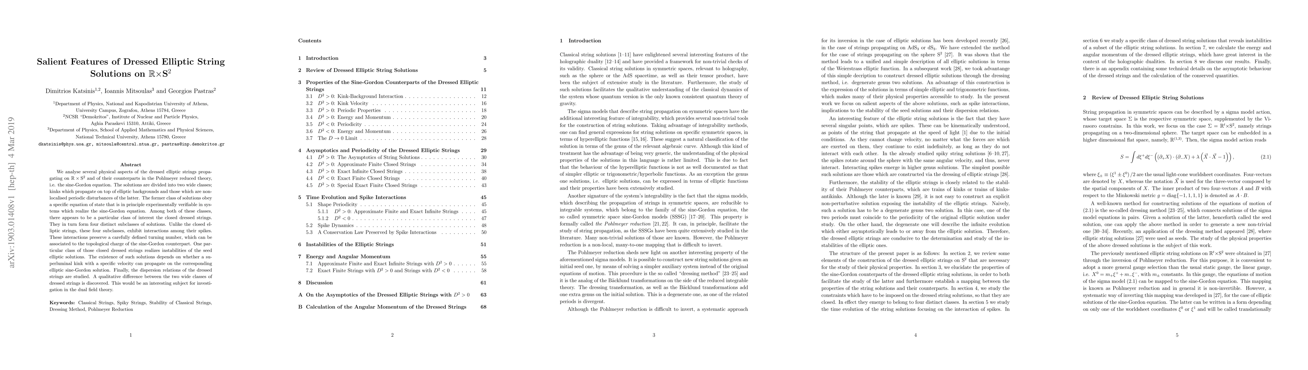 We analyse several physical aspects of the dressed elliptic strings propagating on $\mathbb{R} \times \mathrm{S}^2$ and of their counterparts in the Pohlmeyer reduced theory, i.e. the sine-Gordon equation. The solutions are divided into two wide classes; kinks which propagate on top of elliptic backgrounds and those which are non-localised periodic disturbances of the latter. The former class of solutions obey a specific equation of state that is in principle experimentally verifiable in systems which realize the sine-Gordon equation. Among both of these classes, there appears to be a particular class of interest the closed dressed strings. They in turn form four distinct subclasses of solutions. Unlike the closed elliptic strings, these four subclasses, exhibit interactions among their spikes. These interactions preserve a carefully defined turning number, which can be associated to the topological charge of the sine-Gordon counterpart. One particular class of those closed dressed strings realizes instabilities of the seed elliptic solutions. The existence of such solutions depends on whether a superluminal kink with a specific velocity can propagate on the corresponding elliptic sine-Gordon solution. Finally, the dispersion relations of the dressed strings are studied. A qualitative difference between the two wide classes of dressed strings is discovered. This would be an interesting subject for investigation in the dual field theory.