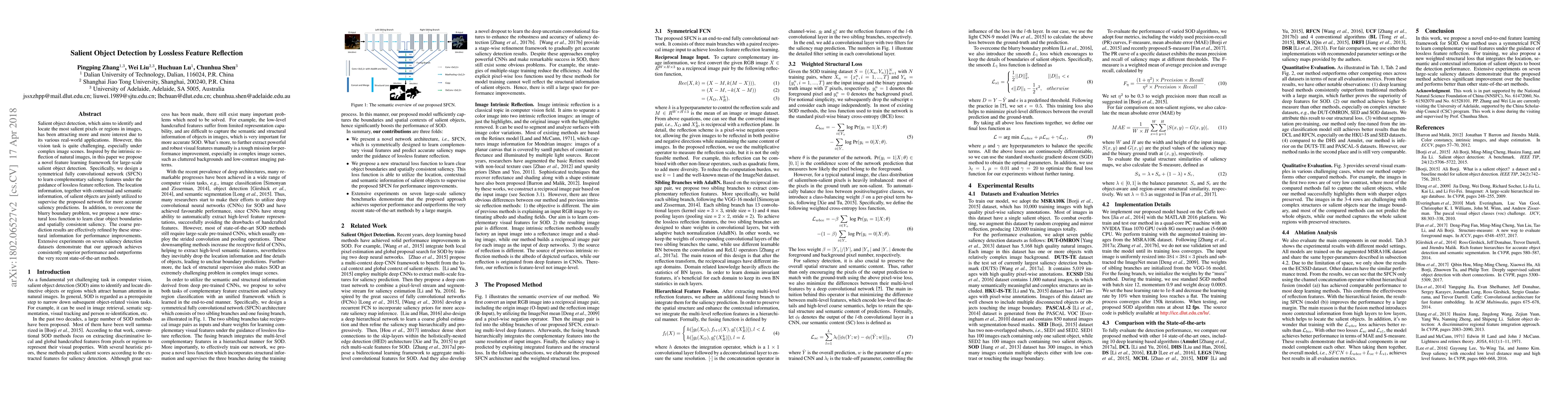 This paper proposes a novel symmetrical fully convolutional network (SFCN) for salient object detection, leveraging lossless feature reflection and a new structural loss function to enhance boundary clarity and saliency prediction accuracy. The method outperforms recent state-of-the-art methods on seven datasets.
