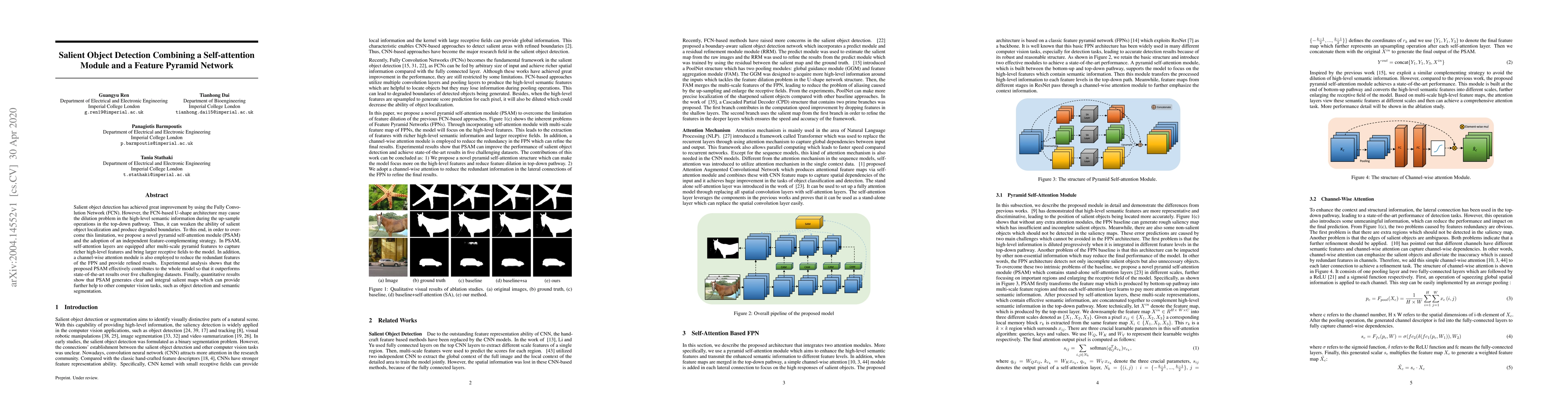 This paper proposes a novel pyramid self-attention module (PSAM) to enhance salient object detection by capturing richer high-level features and improving boundary clarity. The PSAM integrates self-attention layers with a feature pyramid network to overcome dilution issues in FCN-based architectures, resulting in superior performance on multiple datasets.