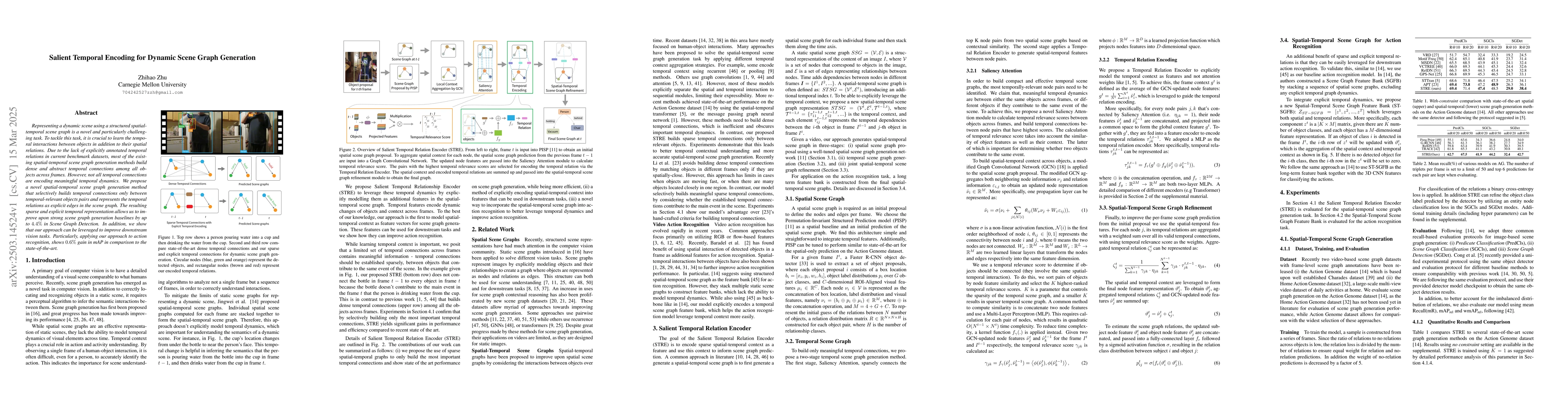 The paper proposes a Salient Temporal Encoding method for dynamic scene graph generation, which selectively builds temporal connections between temporal-relevant object pairs and represents temporal relations as explicit edges in the scene graph.
