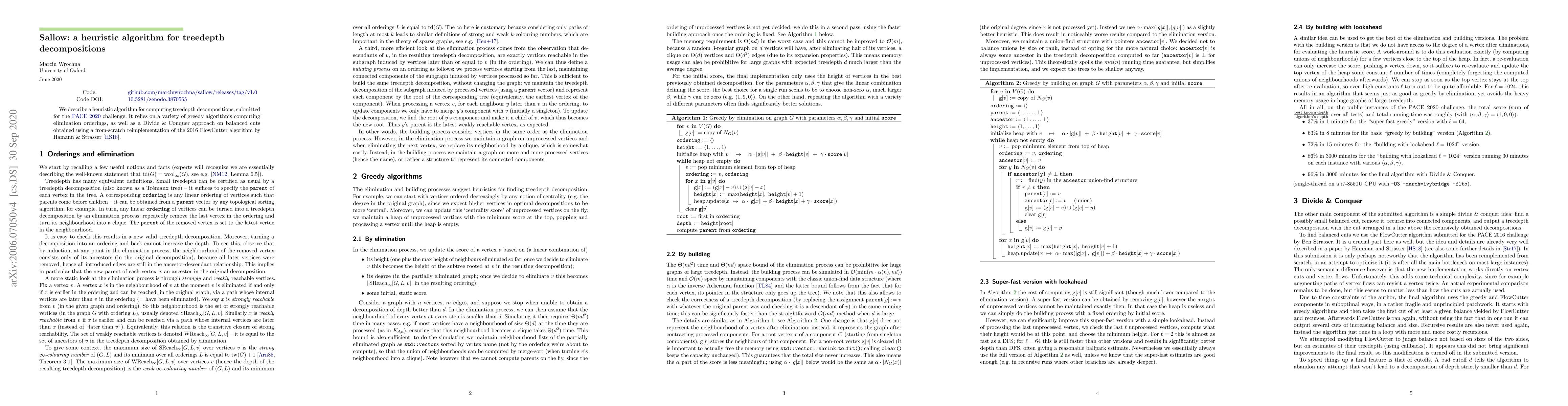 A new algorithm called Sallow is proposed for computing treedepth decompositions with a Divide & Conquer approach on balanced cuts, outperforming other greedy algorithms in the PACE 2020 challenge.