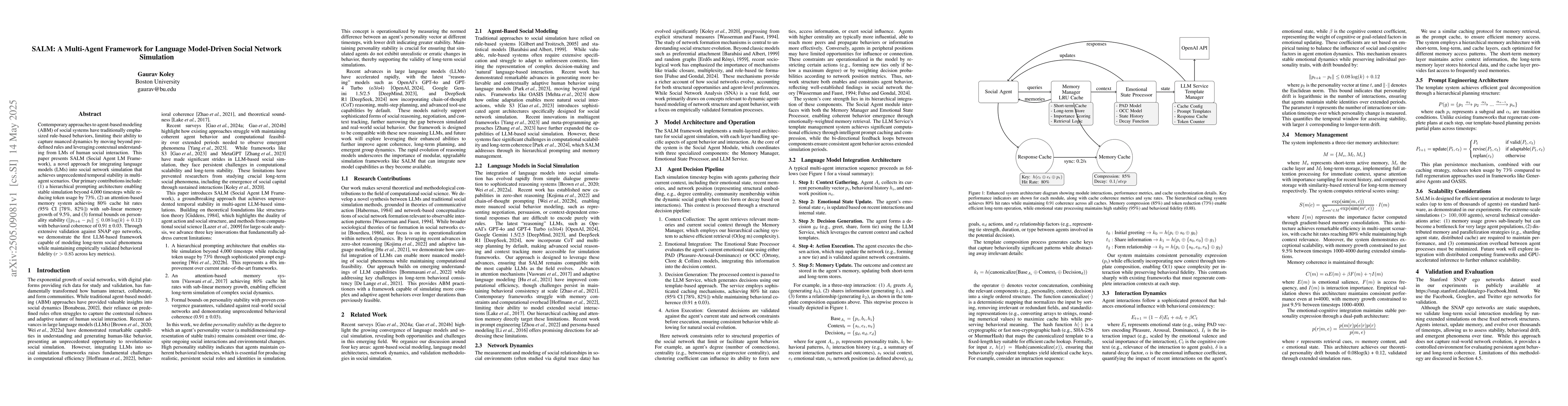 A new framework called SALM integrates language models into social network simulation, achieving unprecedented temporal stability in multi-agent scenarios. It enables long-term modeling of social phenomena while maintaining behavioral fidelity.