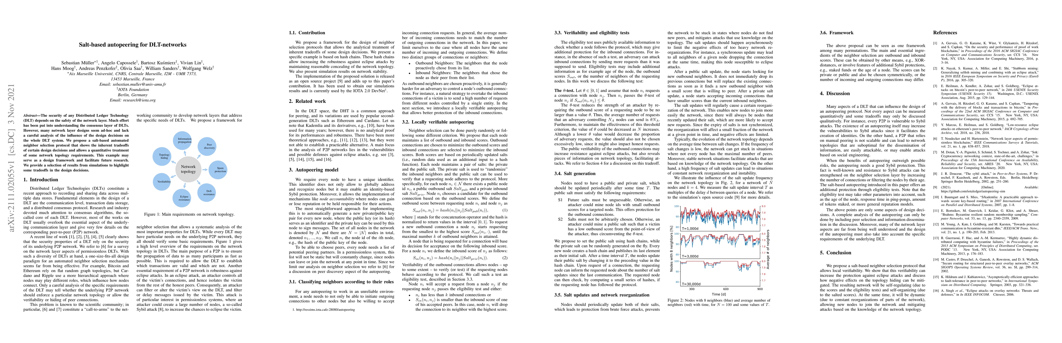The security of any Distributed Ledger Technology (DLT) depends on the safety of the network layer. Much effort has been put into understanding the consensus layer of DLTs. However, many network layer designs seem ad-hoc and lack a careful analysis of the influence of the design decisions on the whole DLT system. We propose a salt-based automated neighbor selection protocol that shows the inherent tradeoffs of certain design decisions and allows a quantitative treatment of some network topology requirements. This example may serve as a design framework and facilitate future research. We provide a selection of results from simulations to highlight some tradeoffs in the design decisions.