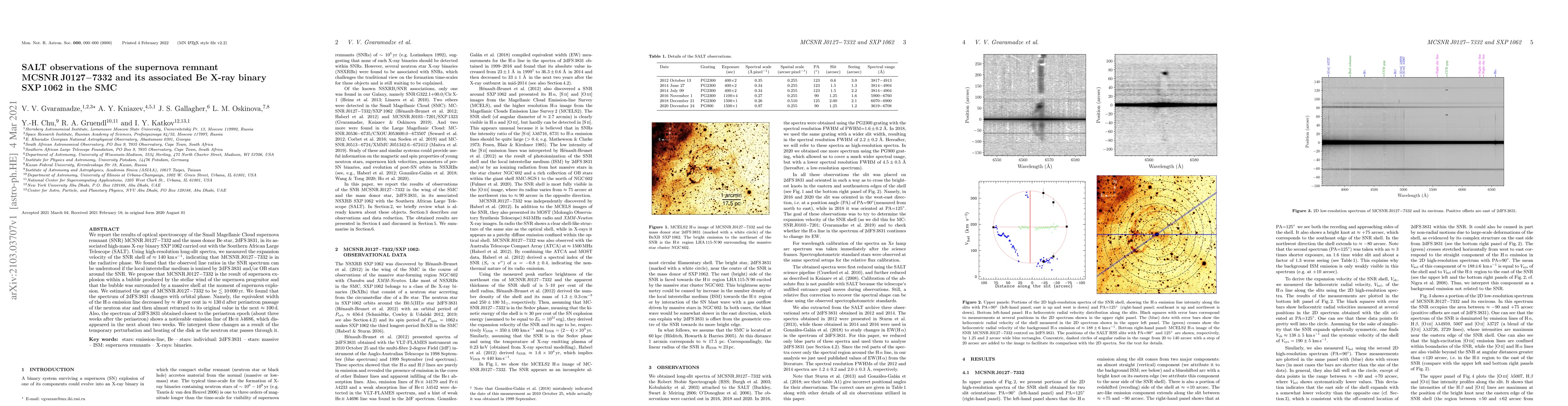 We report the results of optical spectroscopy of the Small Magellanic Cloud supernova remnant (SNR) MCSNR J0127-7332 and the mass donor Be star, 2dFS 3831, in its associated high-mass X-ray binary SXP 1062 carried out with the Southern African Large Telescope (SALT). Using high-resolution long-slit spectra, we measured the expansion velocity of the SNR shell of \approx 140 km/s, indicating that MCSNR J0127-7332 is in the radiative phase. We found that the observed line ratios in the SNR spectrum can be understood if the local interstellar medium is ionized by 2dFS 3831 and/or OB stars around the SNR. We propose that MCSNR J0127-7332 is the result of supernova explosion within a bubble produced by the stellar wind of the supernova progenitor and that the bubble was surrounded by a massive shell at the moment of supernova explosion. We estimated the age of MCSNR J0127-7332 to be \la 10 000 yr. We found that the spectrum of 2dFS 3831 changes with orbital phase. Namely, the equivalent width of the Halpha emission line decreased by \approx 40 per cent in \approx 130 d after periastron passage of the neutron star and then almost returned to its original value in the next \approx 100 d. Also, the spectrum of 2dFS 3831 obtained closest to the periastron epoch (about three weeks after the periastron) shows a noticeable emission line of He II \lambda 4686, which disappeared in the next about two weeks. We interpret these changes as a result of the temporary perturbation and heating of the disk as the neutron star passes through it.