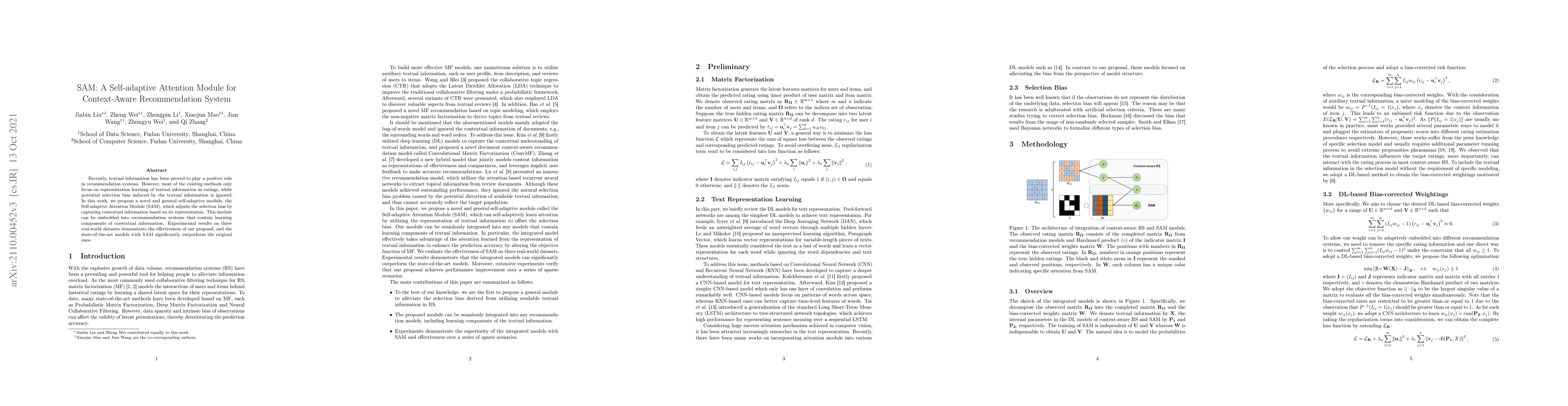 Recently, textual information has been proved to play a positive role in recommendation systems. However, most of the existing methods only focus on representation learning of textual information in ratings, while potential selection bias induced by the textual information is ignored. In this work, we propose a novel and general self-adaptive module, the Self-adaptive Attention Module (SAM), which adjusts the selection bias by capturing contextual information based on its representation. This module can be embedded into recommendation systems that contain learning components of contextual information. Experimental results on three real-world datasets demonstrate the effectiveness of our proposal, and the state-of-the-art models with SAM significantly outperform the original ones.