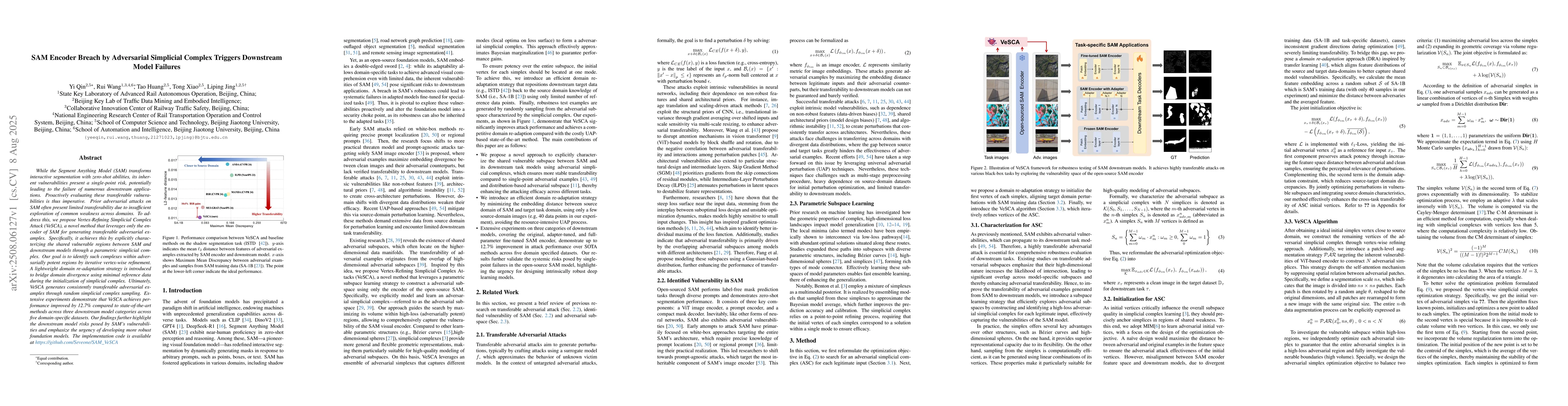 The research proposes Vertex-Refining Simplicial Complex Attack (VeSCA) to identify shared adversarial subspaces between SAM and downstream models using parametric simplicial complexes, combining iterative vertex refinement and volume maximization to encapsulate high-loss regions. A lightweight domain re-adaptation strategy aligns adversarial samples with SAM's training data distribution using minimal reference data.