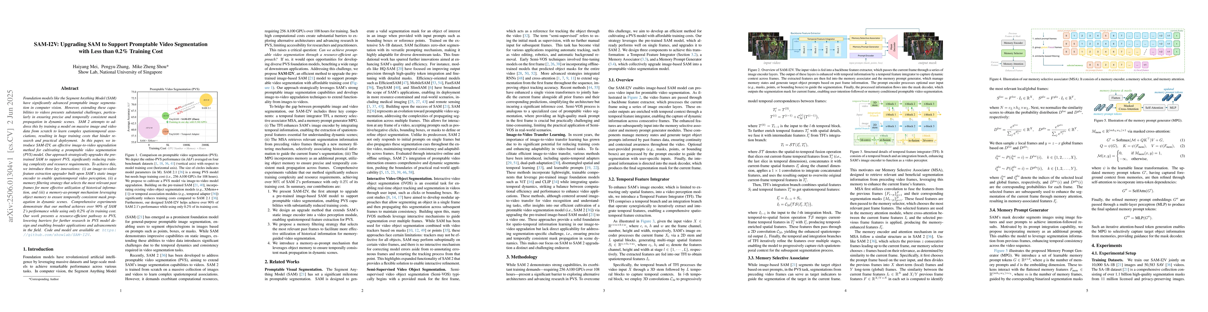 Foundation models like the Segment Anything Model (SAM) have significantly advanced promptable image segmentation in computer vision. However, extending these capabilities to videos presents substantial challenges, particularly in ensuring precise and temporally consistent mask propagation in dynamic scenes. SAM 2 attempts to address this by training a model on massive image and video data from scratch to learn complex spatiotemporal associations, resulting in huge training costs that hinder research and practical deployment. In this paper, we introduce SAM-I2V, an effective image-to-video upgradation method for cultivating a promptable video segmentation (PVS) model. Our approach strategically upgrades the pre-trained SAM to support PVS, significantly reducing training complexity and resource requirements. To achieve this, we introduce three key innovations: (i) an image-to-video feature extraction upgrader built upon SAM's static image encoder to enable spatiotemporal video perception, (ii) a memory filtering strategy that selects the most relevant past frames for more effective utilization of historical information, and (iii) a memory-as-prompt mechanism leveraging object memory to ensure temporally consistent mask propagation in dynamic scenes. Comprehensive experiments demonstrate that our method achieves over 90% of SAM 2's performance while using only 0.2% of its training cost. Our work presents a resource-efficient pathway to PVS, lowering barriers for further research in PVS model design and enabling broader applications and advancements in the field. Code and model are available at: https://github.com/showlab/SAM-I2V.