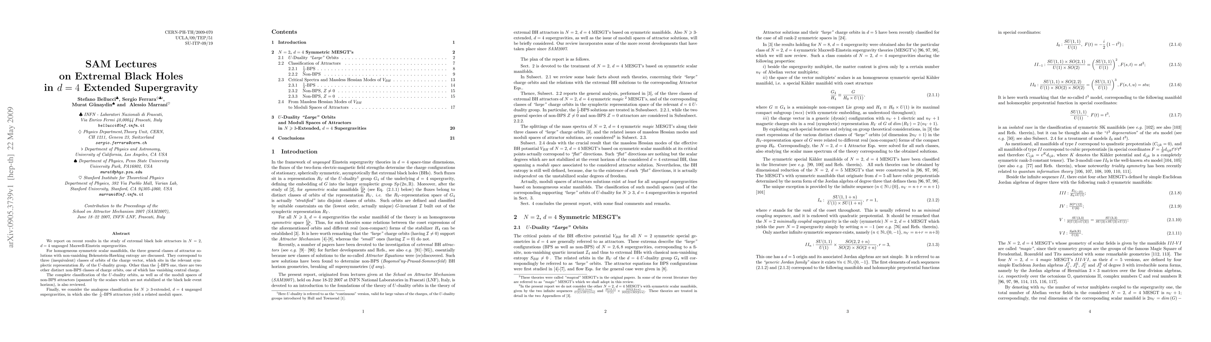 We report on recent results in the study of extremal black hole attractors in N=2, d=4 ungauged Maxwell-Einstein supergravities. For homogeneous symmetric scalar manifolds, the three general classes of attractor solutions with non-vanishing Bekenstein-Hawking entropy are discussed. They correspond to three (inequivalent) classes of orbits of the charge vector, which sits in the relevant symplectic representation R_{V} of the U-duality group. Other than the 1/2-BPS one, there are two other distinct non-BPS classes of charge orbits, one of which has vanishing central charge. The complete classification of the U-duality orbits, as well as of the moduli spaces of non-BPS attractors (spanned by the scalars which are not stabilized at the black hole event horizon), is also reviewed. Finally, we consider the analogous classification for N>2-extended, d=4 ungauged supergravities, in which also the 1/N-BPS attractors yield a related moduli space.