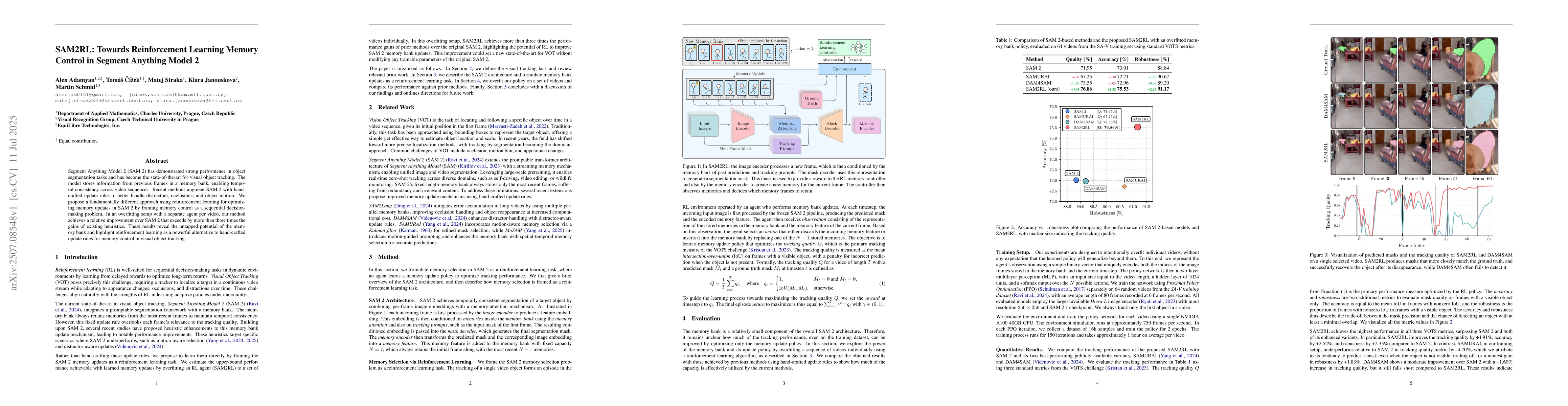 Segment Anything Model 2 (SAM 2) has demonstrated strong performance in object segmentation tasks and has become the state-of-the-art for visual object tracking. The model stores information from previous frames in a memory bank, enabling temporal consistency across video sequences. Recent methods augment SAM 2 with hand-crafted update rules to better handle distractors, occlusions, and object motion. We propose a fundamentally different approach using reinforcement learning for optimizing memory updates in SAM 2 by framing memory control as a sequential decision-making problem. In an overfitting setup with a separate agent per video, our method achieves a relative improvement over SAM 2 that exceeds by more than three times the gains of existing heuristics. These results reveal the untapped potential of the memory bank and highlight reinforcement learning as a powerful alternative to hand-crafted update rules for memory control in visual object tracking.