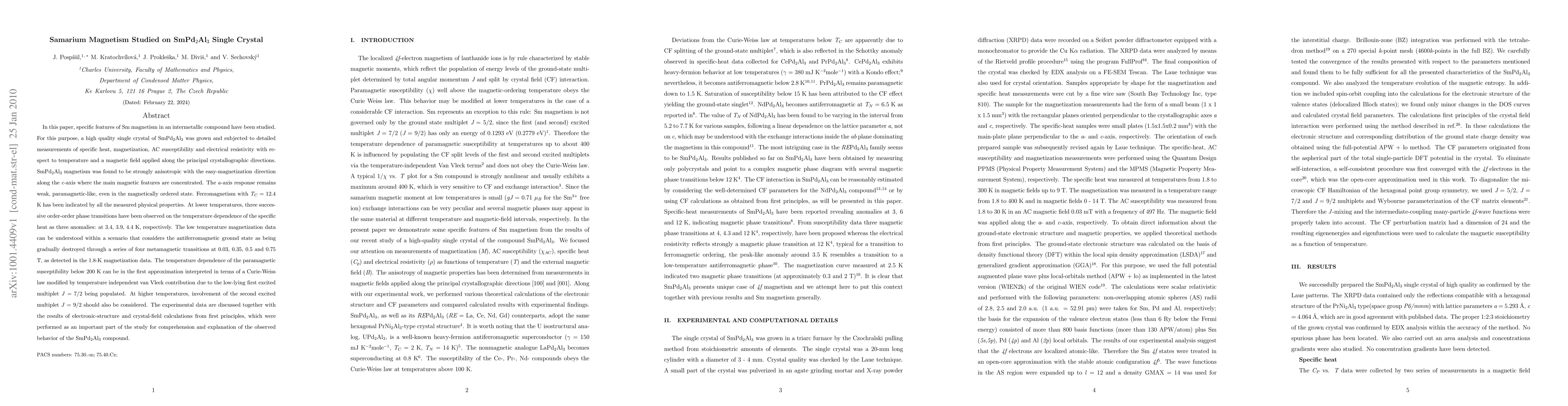 Researchers studied SmPd2Al3, a compound that exhibits strongly anisotropic magnetism with ferromagnetic behavior at 12.4 K, and found three phase transitions in its specific heat data.