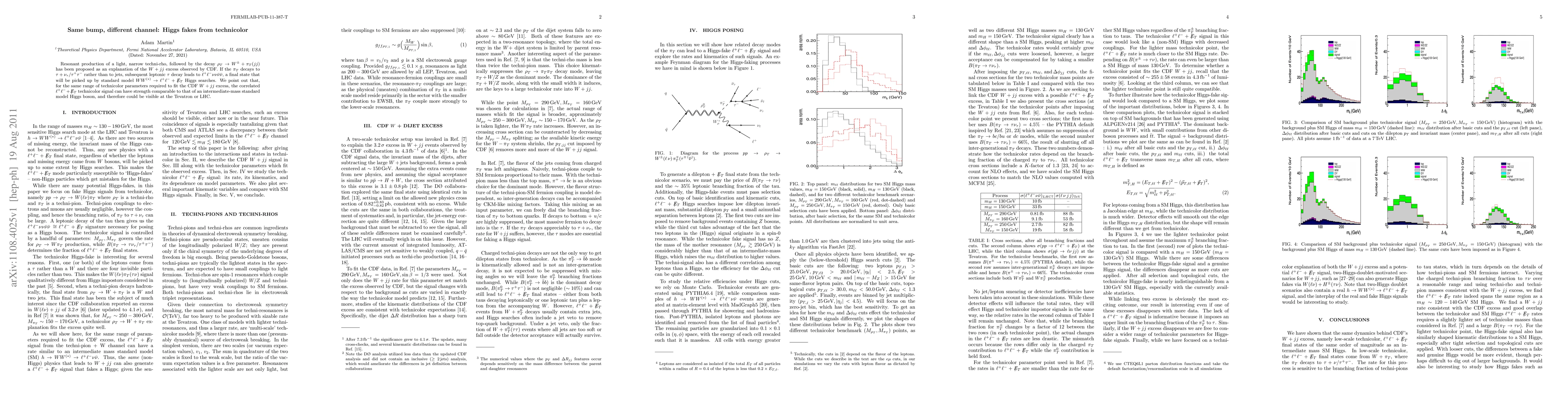 Resonant production of a light, narrow techni-rho, followed by the decay $\rho_T \rightarrow W+\pi_T(jj)$ has been proposed as an explanation of the Wjj excess observed by CDF. If the $\pi_T$ decays to $\tau+\nu/\tau^+ \tau^-$ rather than to jets, subsequent leptonic $\tau$ decay leads to $\ell^+\ell^- \nu\nu\bar{\nu}\bar{\nu}$, a final state that will be picked up by standard model $WW^{(*)} \rightarrow \ell^+\ell^-$ + MET Higgs searches. We point out that, for the same range of technicolor parameters required to fit the CDF Wjj excess, the correlated $\ell^+\ell^-$ + MET technicolor signal can have strength comparable to that of an intermediate-mass standard model Higgs boson, and therefore could be visible at the Tevatron or LHC.