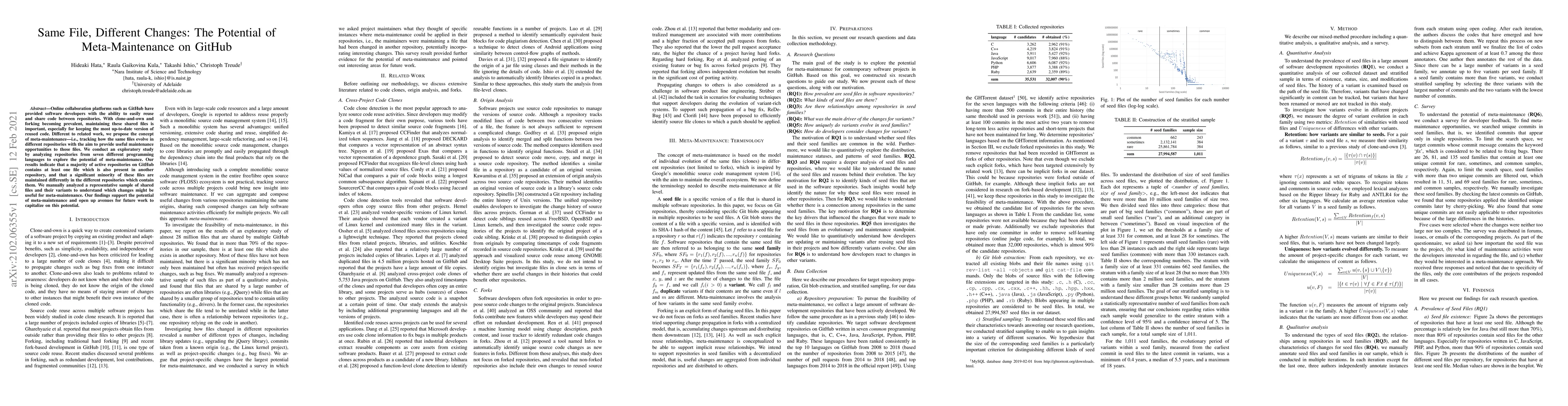 Online collaboration platforms such as GitHub have provided software developers with the ability to easily reuse and share code between repositories. With clone-and-own and forking becoming prevalent, maintaining these shared files is important, especially for keeping the most up-to-date version of reused code. Different to related work, we propose the concept of meta-maintenance -- i.e., tracking how the same files evolve in different repositories with the aim to provide useful maintenance opportunities to those files. We conduct an exploratory study by analyzing repositories from seven different programming languages to explore the potential of meta-maintenance. Our results indicate that a majority of active repositories on GitHub contains at least one file which is also present in another repository, and that a significant minority of these files are maintained differently in the different repositories which contain them. We manually analyzed a representative sample of shared files and their variants to understand which changes might be useful for meta-maintenance. Our findings support the potential of meta-maintenance and open up avenues for future work to capitalize on this potential.