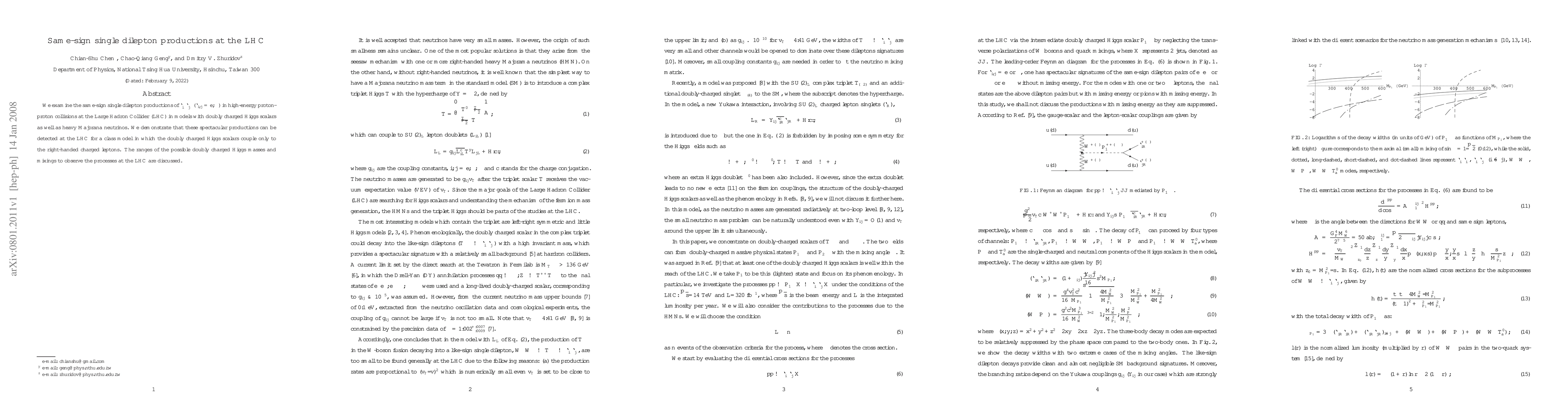 This paper investigates same-sign single dilepton productions in proton-proton collisions at the LHC, focusing on models involving doubly charged Higgs scalars and heavy Majorana neutrinos. It demonstrates that these processes can be detected under specific coupling conditions, discussing the relevant mass and mixing ranges for observation.