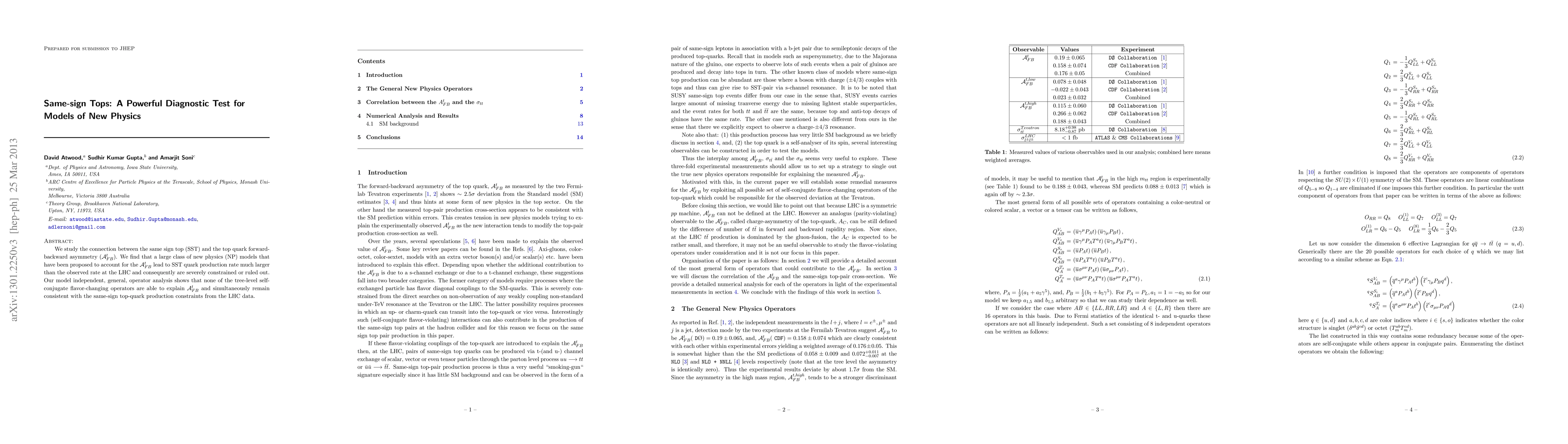 This paper investigates the relationship between same-sign top quarks (SST) and the top quark forward-backward asymmetry $A^t_{FB}$, finding that many new physics models explaining $A^t_{FB}$ predict SST production rates exceeding LHC observations, thus constraining or invalidating them. The study concludes that no tree-level flavor-changing operators can reconcile $A^t_{FB}$ with LHC's SST production constraints.