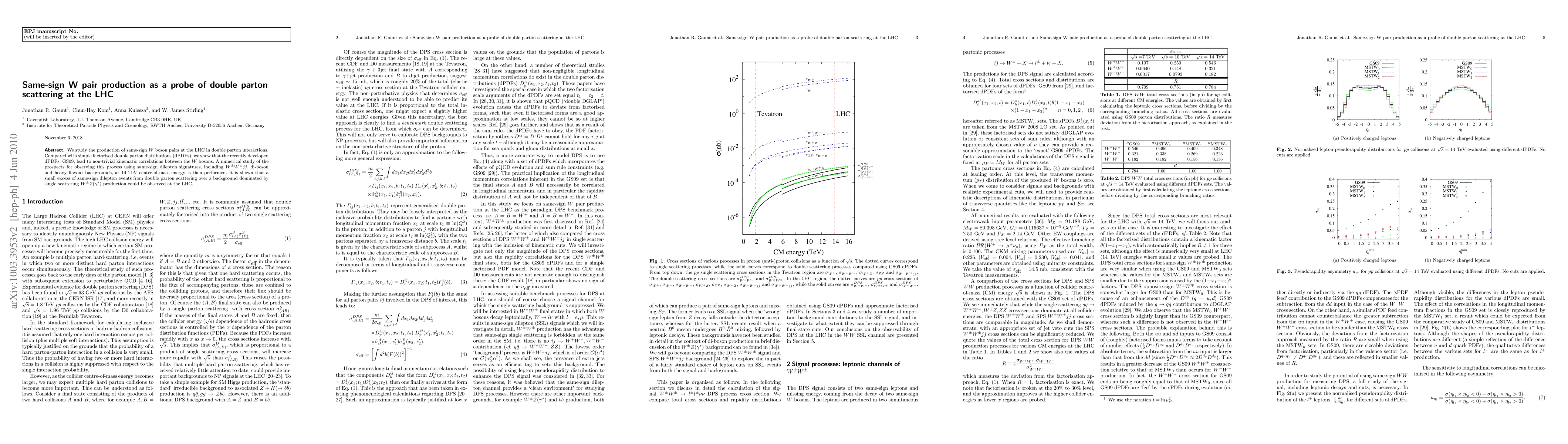 This paper investigates the production of same-sign W boson pairs via double parton scattering at the LHC, demonstrating that the GS09 double parton distributions lead to unique kinematic correlations. A numerical analysis suggests that a small excess of same-sign dilepton events from double parton scattering could be observed, distinguishing it from single scattering backgrounds.