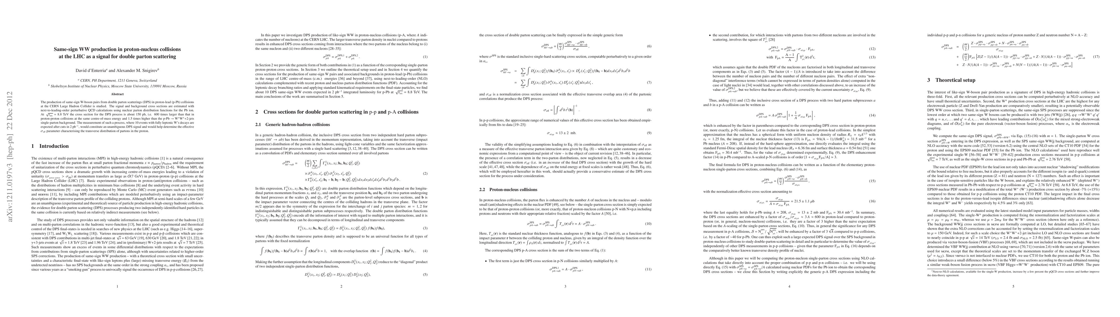 The production of same-sign W-boson pairs from double parton scatterings (DPS) in proton-lead (p-Pb) collisions at the CERN Large Hadron Collider is studied. The signal and background cross sections are estimated with next-to-leading-order perturbative QCD calculations using nuclear parton distribution functions for the Pb ion. At sqrt(sNN) = 8.8 TeV the cross section for the DPS process is about 150 pb, i.e. 600 times larger than that in proton-proton collisions at the same centre-of-mass energy and 1.5 times higher than the pPb --> WW+2-jets single-parton background. The measurement of such a process, where 10 events with fully leptonic W's decays are expected after cuts in 2 pb^{-1}, would constitute an unambiguous DPS signal and would help determine the effective sigma_eff parameter characterising the transverse distribution of partons in the proton.