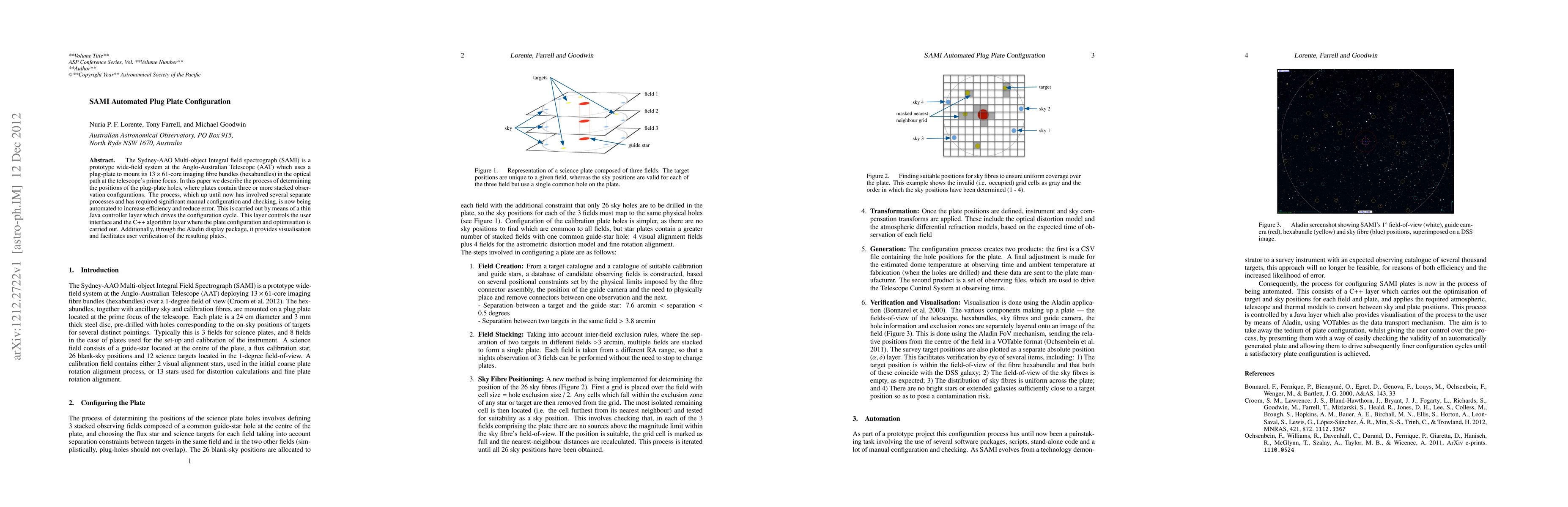 The Sydney-AAO Multi-object Integral field spectrograph (SAMI) is a prototype wide-field system at the Anglo-Australian Telescope (AAT) which uses a plug-plate to mount its 13 x 61-core imaging fibre bundles (hexabundles) in the optical path at the telescope's prime focus. In this paper we describe the process of determining the positions of the plug-plate holes, where plates contain three or more stacked observation configurations. The process, which up until now has involved several separate processes and has required significant manual configuration and checking, is now being automated to increase efficiency and reduce error. This is carried out by means of a thin Java controller layer which drives the configuration cycle. This layer controls the user interface and the C++ algorithm layer where the plate configuration and optimisation is carried out. Additionally, through the Aladin display package, it provides visualisation and facilitates user verification of the resulting plates.