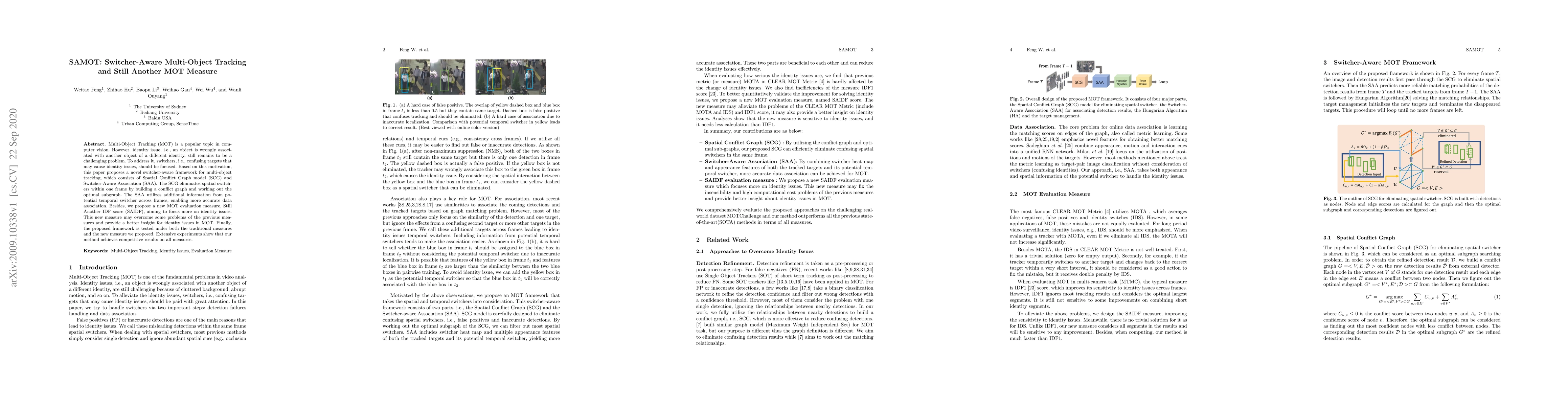 Multi-Object Tracking (MOT) is a popular topic in computer vision. However, identity issue, i.e., an object is wrongly associated with another object of a different identity, still remains to be a challenging problem. To address it, switchers, i.e., confusing targets thatmay cause identity issues, should be focused. Based on this motivation,this paper proposes a novel switcher-aware framework for multi-object tracking, which consists of Spatial Conflict Graph model (SCG) and Switcher-Aware Association (SAA). The SCG eliminates spatial switch-ers within one frame by building a conflict graph and working out the optimal subgraph. The SAA utilizes additional information from potential temporal switcher across frames, enabling more accurate data association. Besides, we propose a new MOT evaluation measure, Still Another IDF score (SAIDF), aiming to focus more on identity issues.This new measure may overcome some problems of the previous measures and provide a better insight for identity issues in MOT. Finally,the proposed framework is tested under both the traditional measures and the new measure we proposed. Extensive experiments show that ourmethod achieves competitive results on all measure.