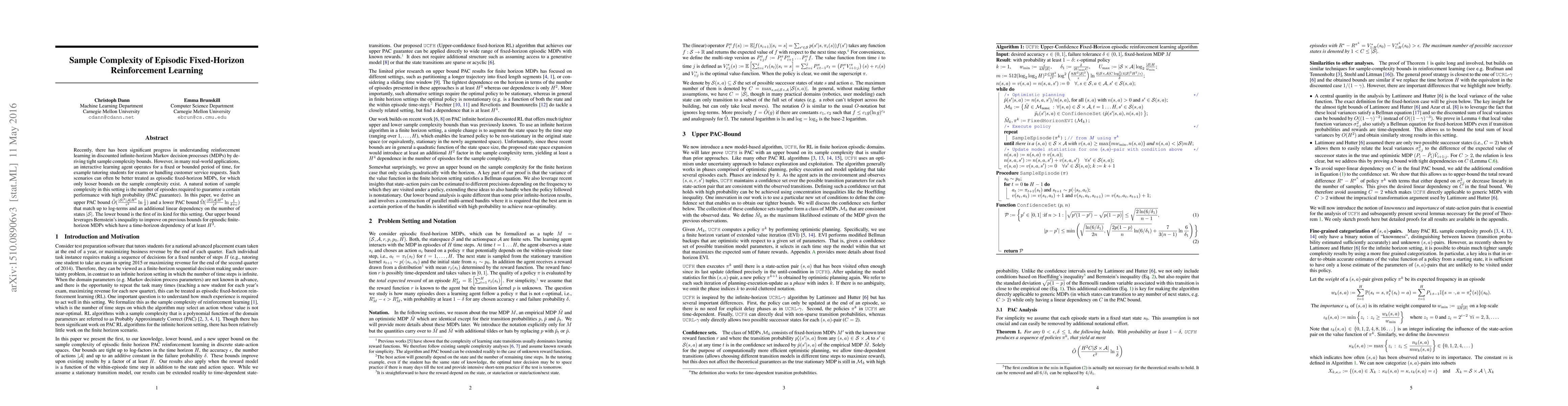 This paper investigates the sample complexity for episodic fixed-horizon reinforcement learning, deriving tight upper and lower PAC bounds that match up to log-terms and an additional linear dependency on the number of states. The upper bound improves on previous bounds using Bernstein's inequality.
