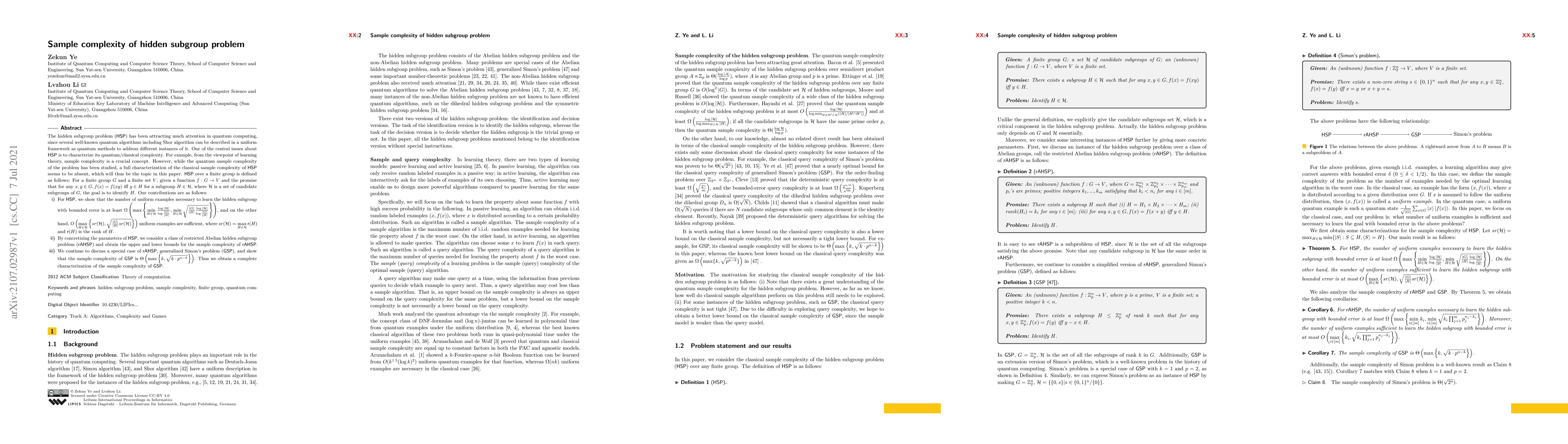 This paper investigates the classical sample complexity of the hidden subgroup problem ($\mathsf{HSP}$), providing both upper and lower bounds on its sample complexity. It also characterizes the sample complexity of the generalized Simon's problem ($\mathsf{GSP}$), showing it to be $\Theta\left(\max\left\{k,\sqrt{k\cdot p^{n-k}}\right\}\right)$.