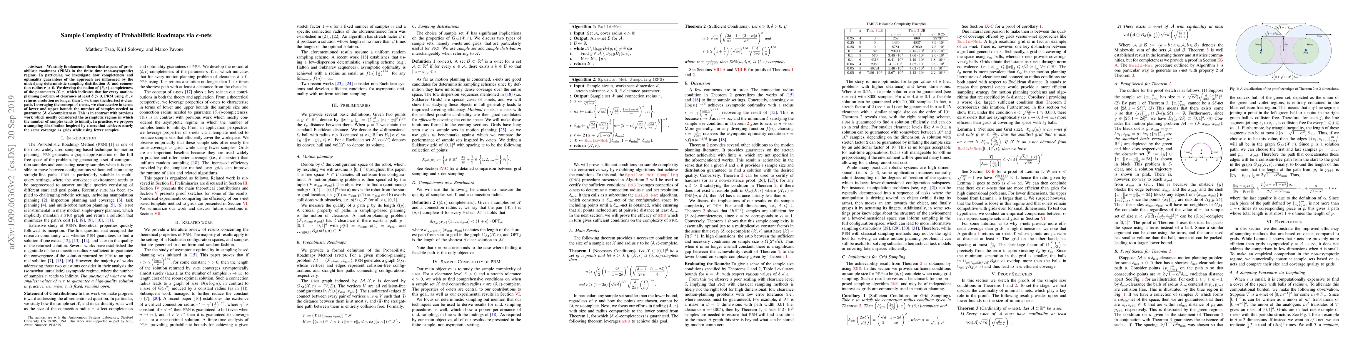 The paper studies the theoretical aspects of probabilistic roadmaps (PRM) in finite time, focusing on how completeness and optimality are influenced by the sampling distribution X and connection radius r. It introduces the notion of (δ, ε)-completeness and characterizes sample complexity using ε-nets.