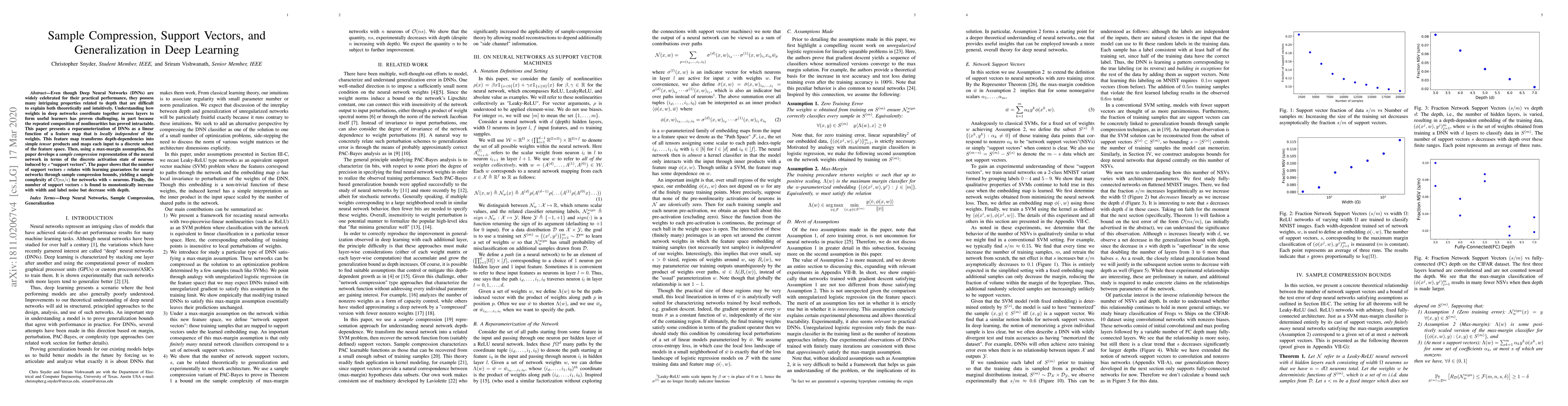 This paper reimagines Deep Neural Networks as a linear function of a feature map, enabling sample compression representation through support vectors. It reveals that the number of support vectors relates to learning guarantees and network depth.