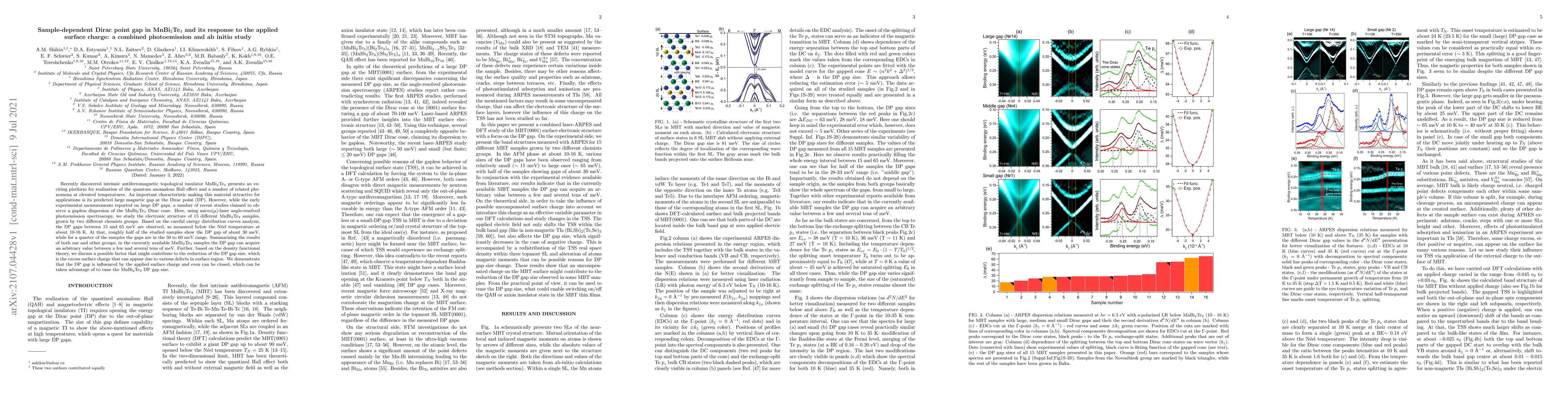 This study investigates the sample-dependent Dirac point gap in MnBi$_2$Te$_4$ using micro-laser angle-resolved photoemission spectroscopy, revealing that the gap varies significantly across different samples, ranging from 15 to 65 meV. The research also shows that the applied surface charge, influenced by defects, can close the Dirac point gap, suggesting a tunable method for modifying the material's properties.