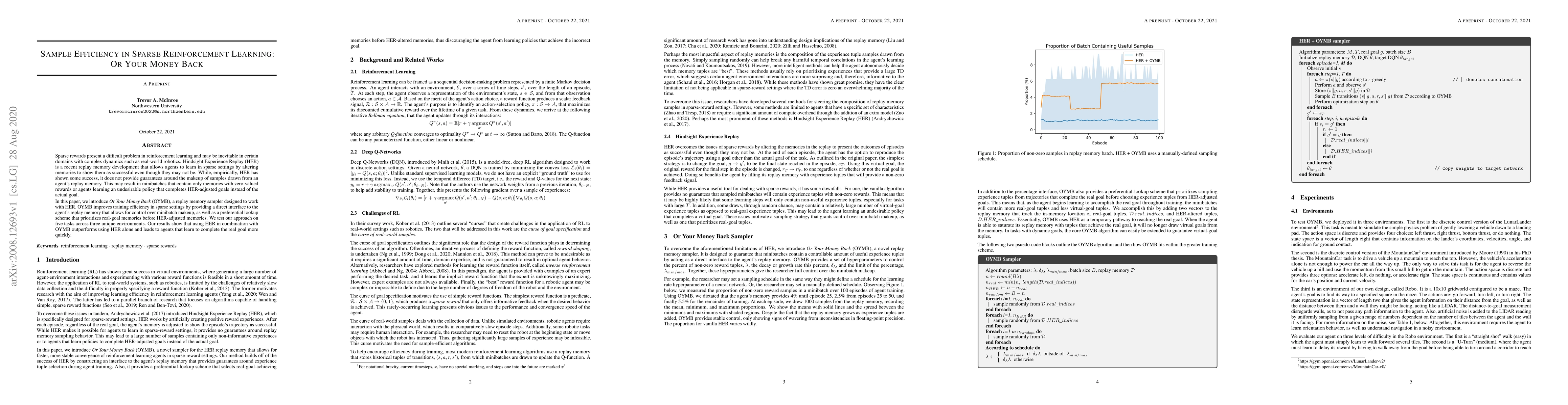 This paper introduces Or Your Money Back (OYMB), a replay memory sampler to improve sample efficiency in sparse reinforcement learning, particularly when using Hindsight Experience Replay (HER). OYMB enhances training efficiency by controlling minibatch composition and prioritizing real-goal memories over HER-adjusted ones, leading to faster learning of the actual goal in various tasks.