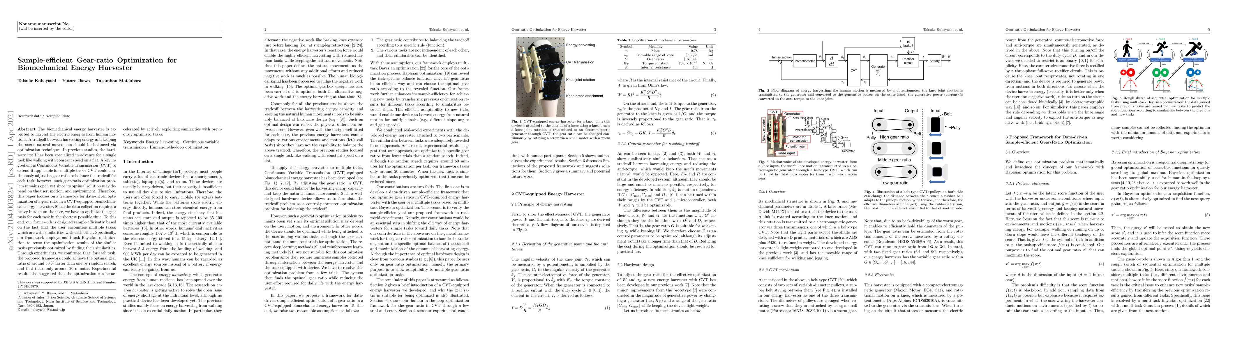 Researchers developed a sample-efficient framework for optimizing gear ratios in biomechanical energy harvesters to balance harvesting energy with user natural movements. Their approach achieved optimal results 50% faster than random search in just 20 minutes.