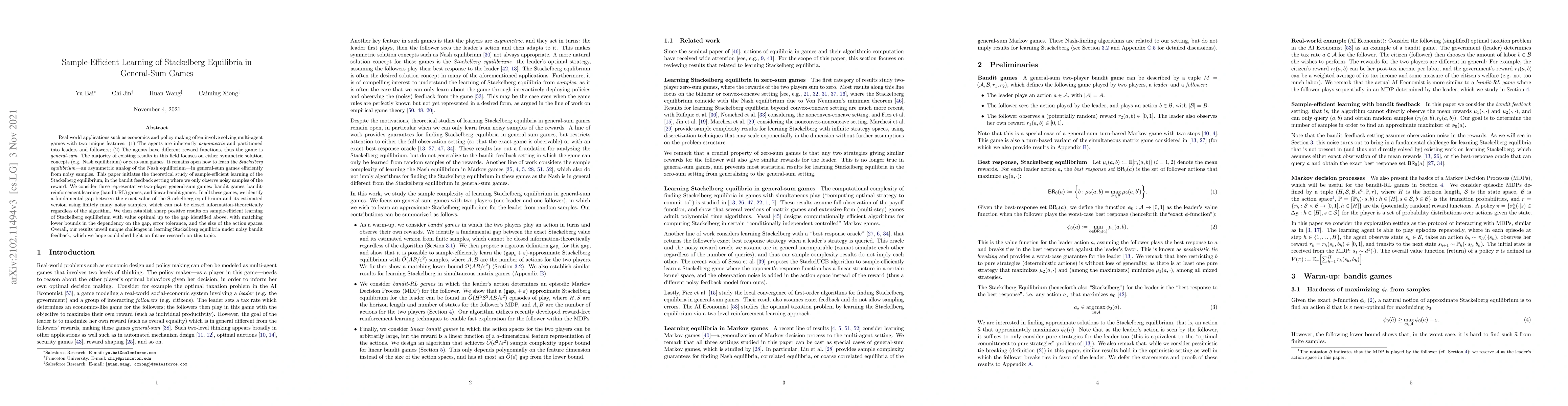 This paper explores the sample-efficient learning of Stackelberg equilibria in general-sum games, focusing on asymmetric leader-follower dynamics. It identifies inherent challenges in estimating these equilibria from noisy samples and provides optimal algorithms and matching lower bounds for three representative game types.